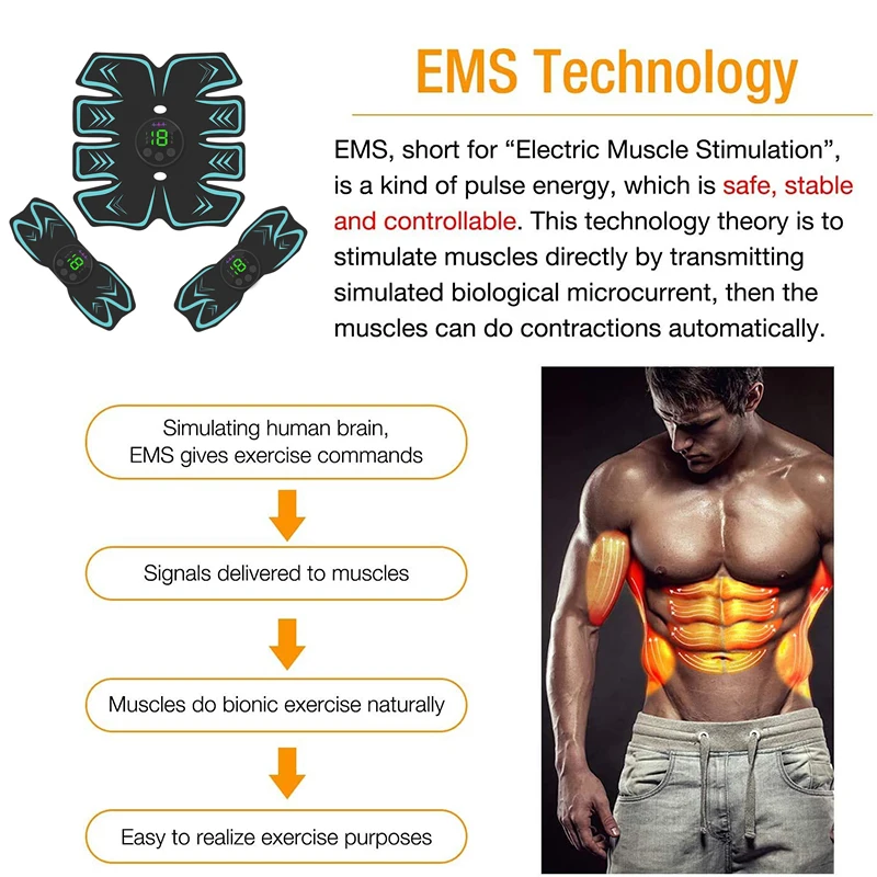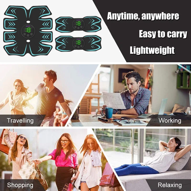 Особенности Особенность 1: этот тонер для тела предназначен для тренировки мышц и похудения тела. Это может помочь тону, затянуть и укрепить мышцы вашего тела, вы можете получить лучшую фигуру после последовательного использования этого продукта около 2 месяцев. Особенность 2: Простота в использовании! Разработан с эргономикой, ориентированной на мышцы брюшного пресса. Закрепите тренажер в том положении, в котором вы хотите укрепить мышцы. Просто нажмите кнопку, чтобы начать упражнение. Есть 6 режимов и 19 интенсивностей по желанию, чтобы помочь сжиганию жира и росту мышц. Каждая машина для EMS может регулироваться индивидуально. Особенность 3: широкое использование: тренируйте мышцы живота, рук, бедер, талии, плеч, спины и ног. Подходит как для мужчин, так и для женщин. Характеристики 4: заряжаемый: Этот мышечный Стимулятор перезаряжается и не требует аккумулятора, вы можете зарядить его от настенного зарядного устройства, банка питания, ноутбука и т. д. Особенность 5: вы можете использовать этот EMS тренажер ab в любое время и в любом месте. Это супер-светильник, ультратонкий, удобный для ношения. Его можно носить незаметно под одеждой, что делает его идеальным для тренировки мышц во время чтения, просмотра фильма или работы по дому, или даже во время бизнеса или отдыха