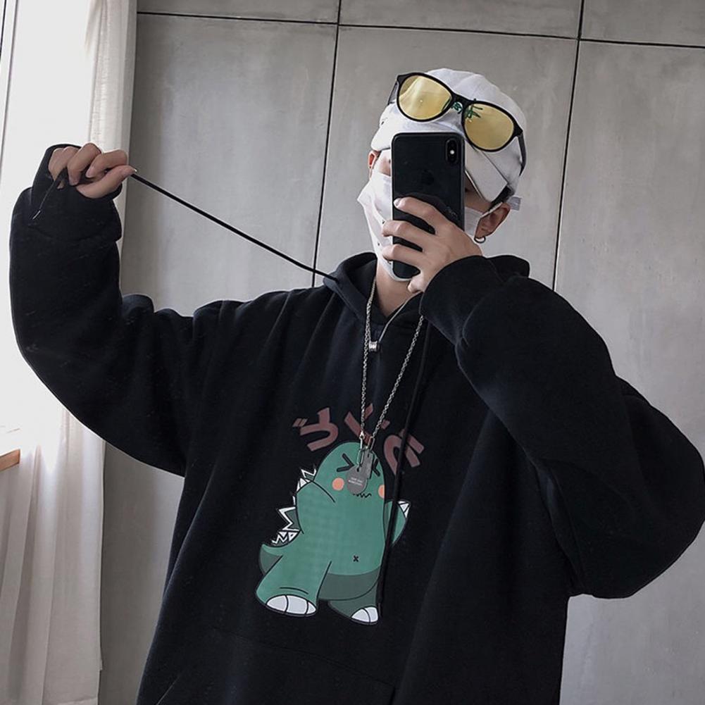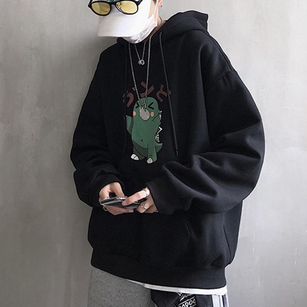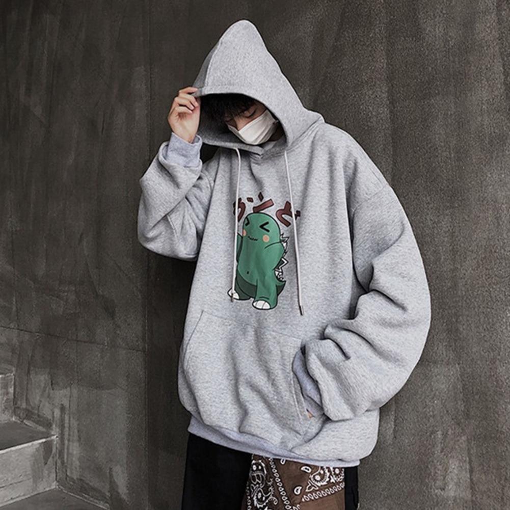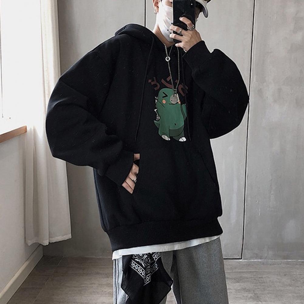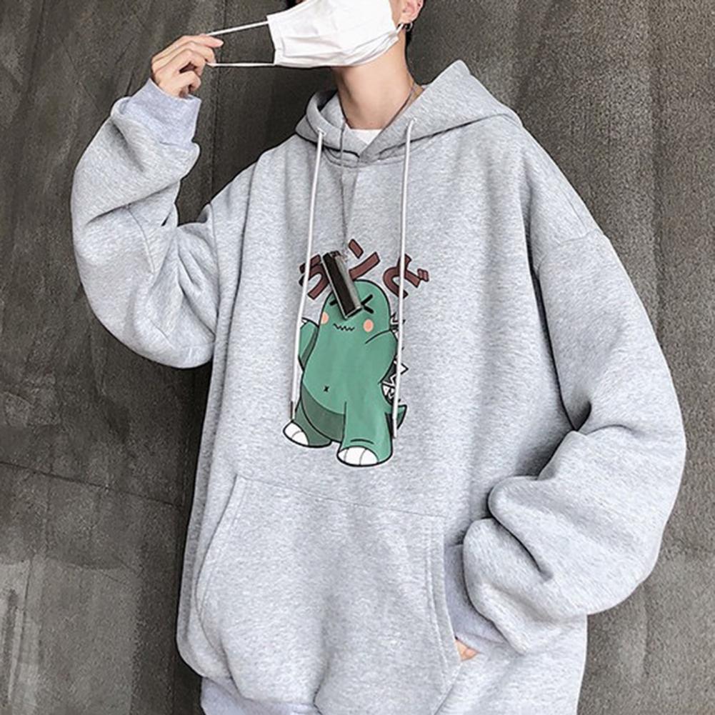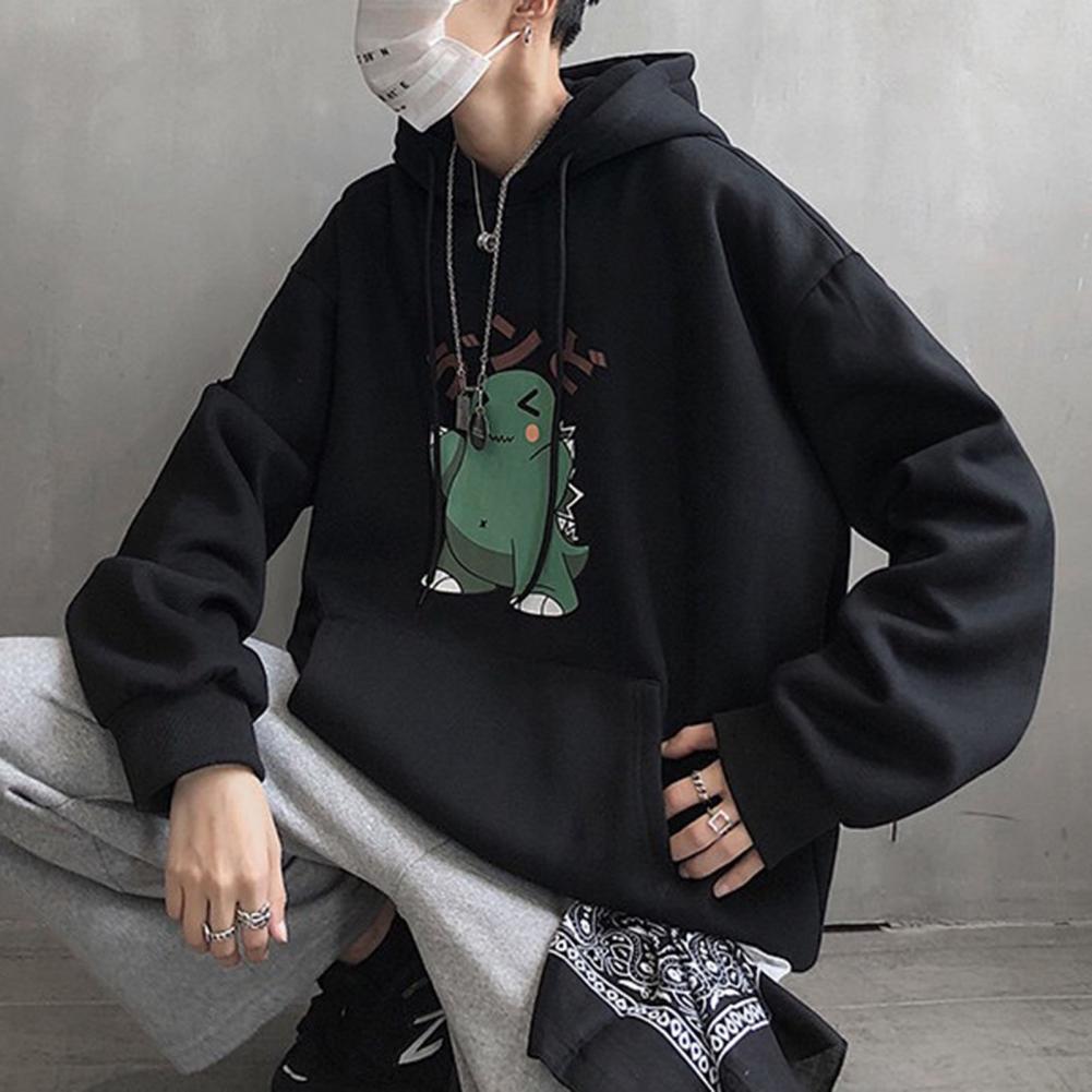 Весенние мужские толстовки размера плюс с принтом динозавра из мультфильма, ветронепроницаемый полиэфирный мужской модный свитер с капюшоном в Корейском стиле