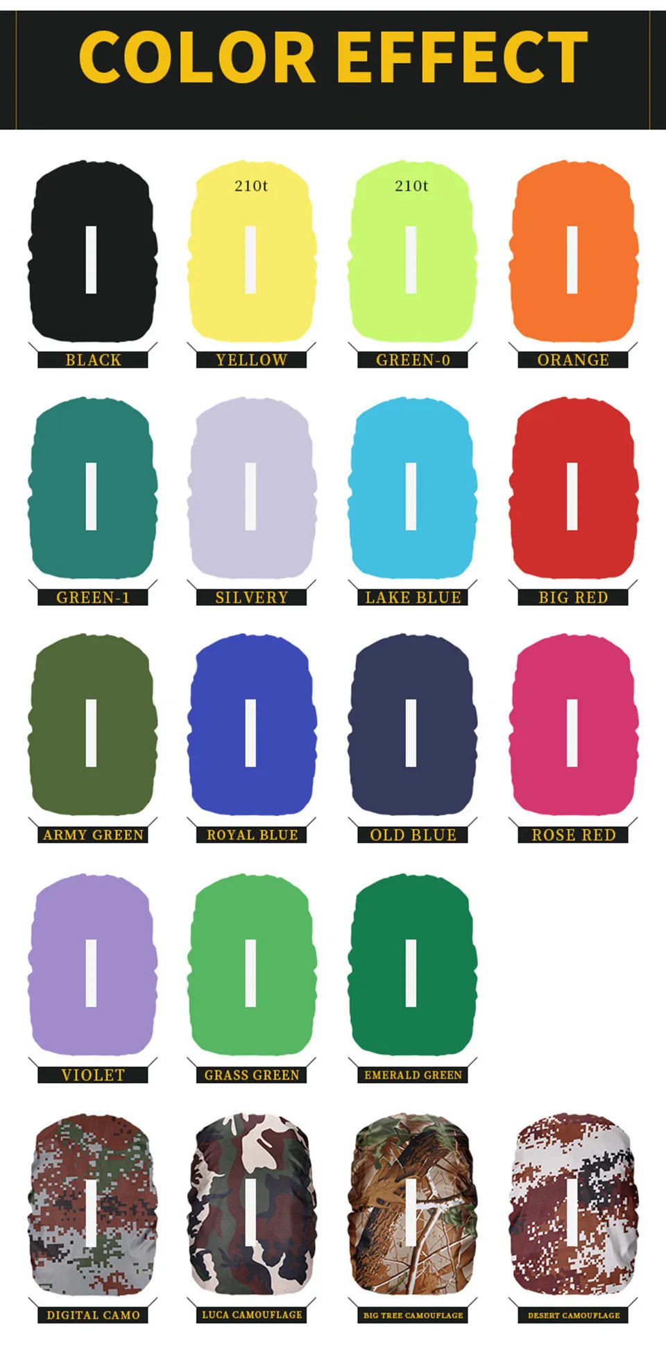 Название: дождевик для рюкзака Цвет: 17 цветов в наличии Емкость: 90-100 л Посылка: 1 х отражающий рюкзак дождевик Супер водонепроницаемый: Не допускайте попадания воды. Водонепроницаемый износостойкий нейлоновый материал может сделать его. Он может противостоять воде 2000 МПа гидравлического давления.