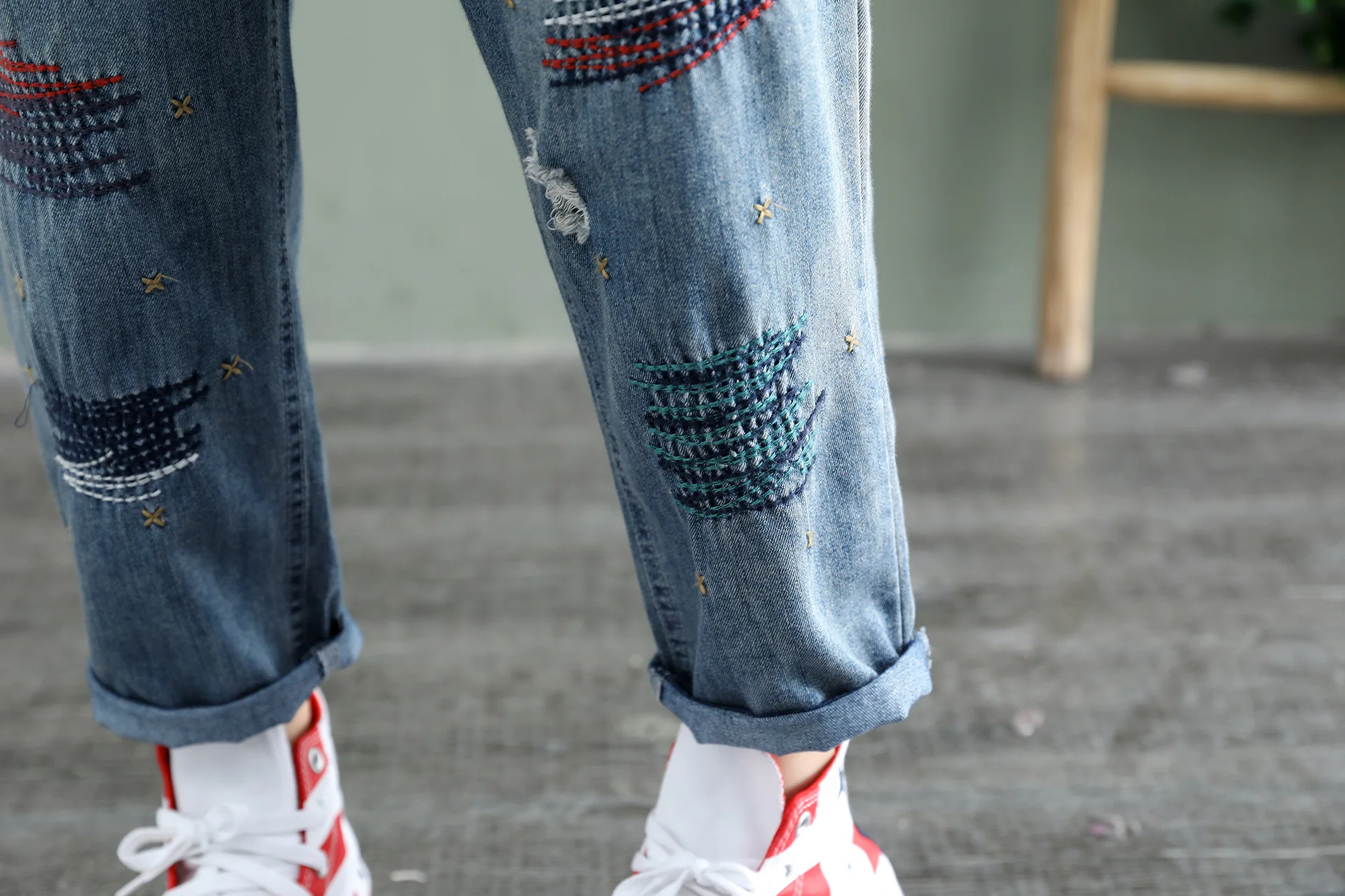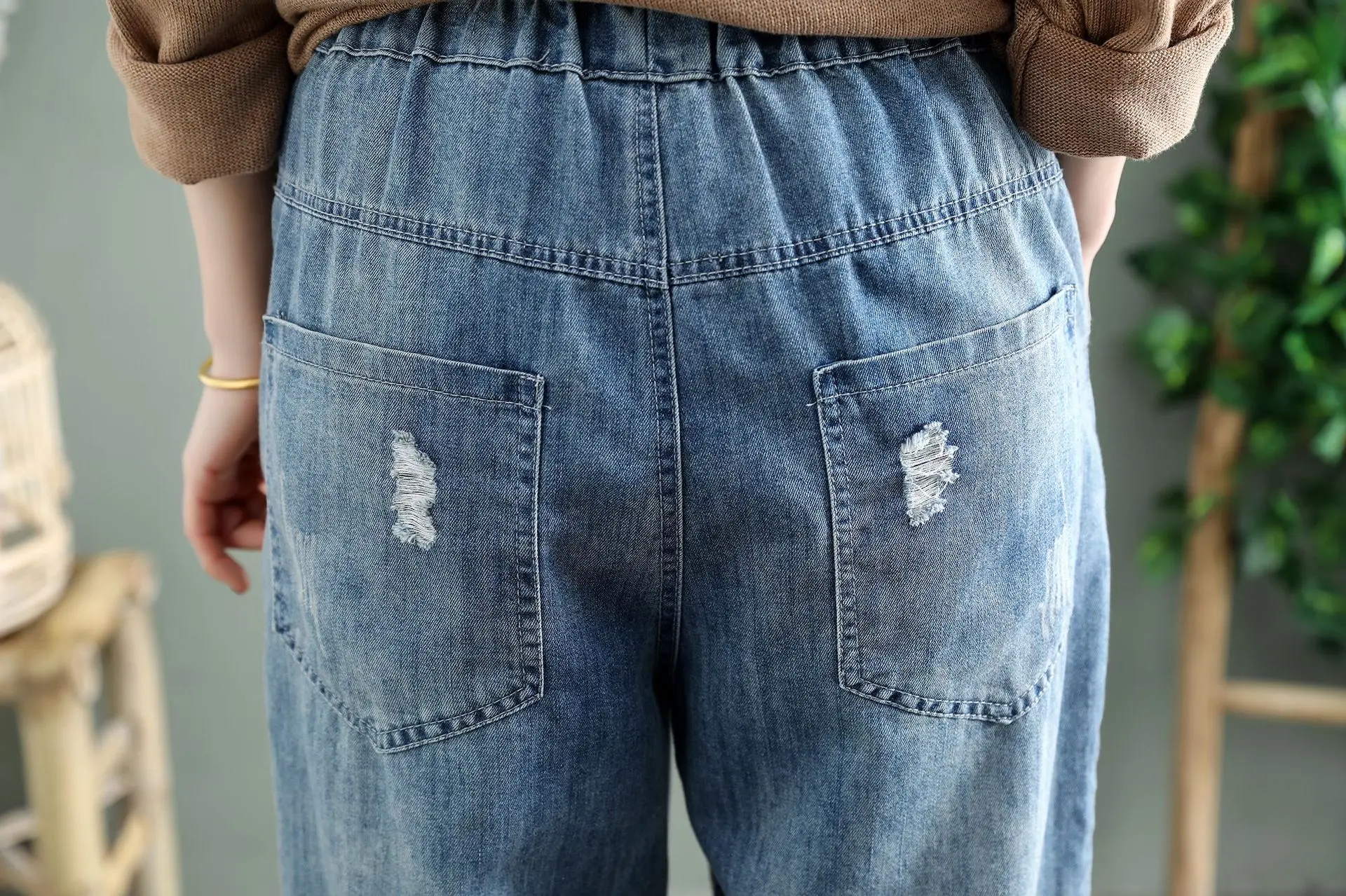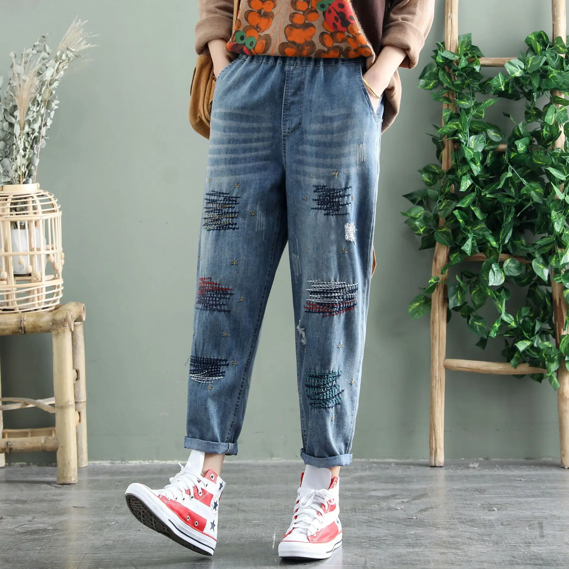 Женские рваные джинсы в винтажном ретро-стиле тонкие брюки до щиколотки с