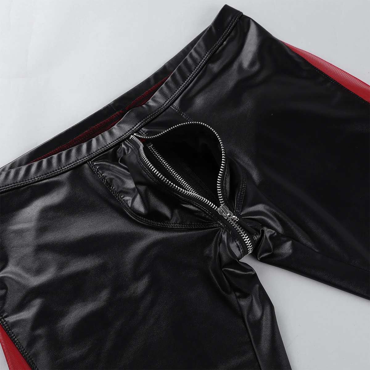 Черный Панк Сексуальная Клубная одежда Мужская мягкая искусственная кожа молния промежность сетки сращивания бандаж мешок с низкой посадкой Slim Fit плотные Боксеры Шорты