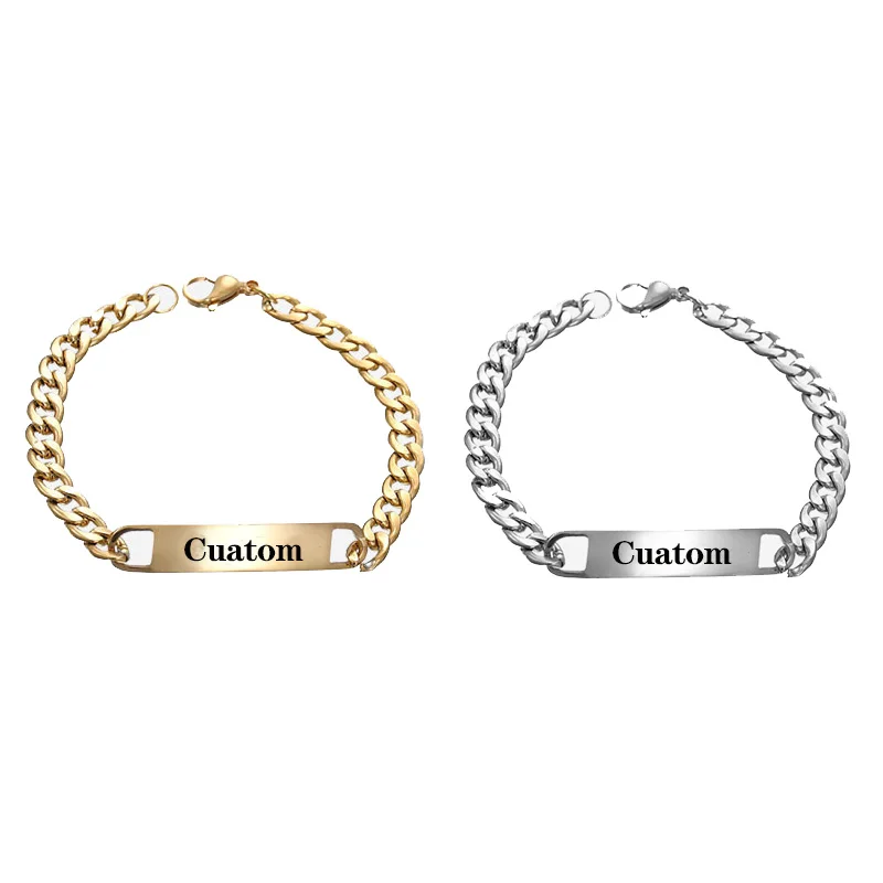 Женские и мужские браслеты в стиле панк, с гравировкой имени, из нержавеющей стали, в стиле хип-хоп, кубинские браслеты, персонализированные ювелирные изделия
