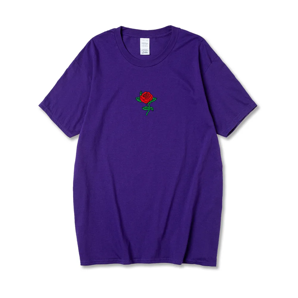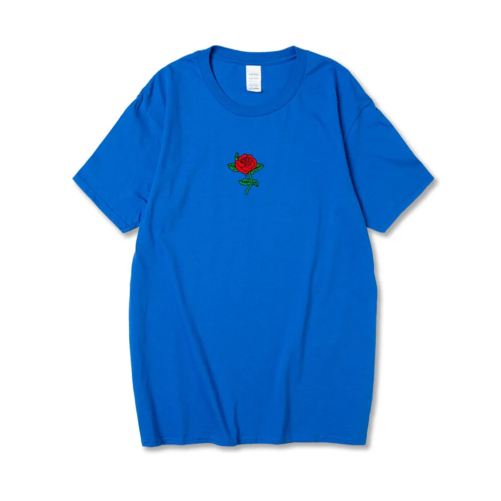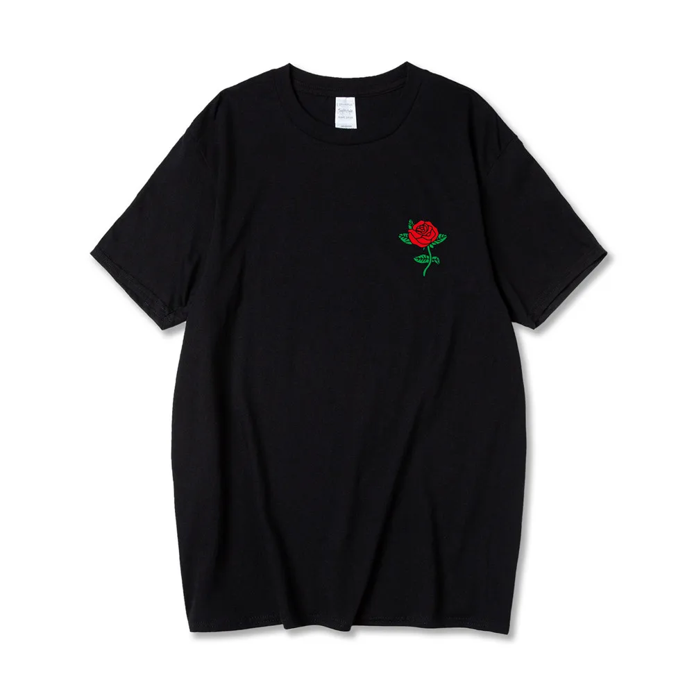 Харадзюку хлопковая Футболка мужская мода Роза цветочный принт короткий рукав футболки Топы Уличная Повседневная camisetas Мужская футболка homme