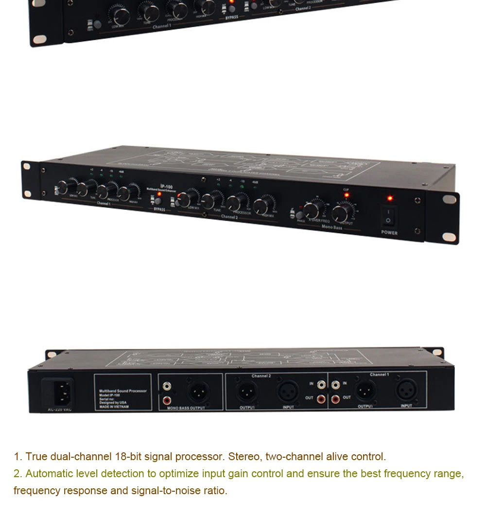 Описание продукта DSP-99 DSP-100 Профессиональный караоке-предусилитель DSP-99-это предусилитель для профессионального караоке с 99 цифровыми эффектами реверберации. Музыка, реверберация, независимая громкость микрофона Регулировка, Встроенный выход сабвуфера, регулируемая точка кроссовера, высокие, средние и низкие частоты микрофона можно регулировать независимо, Делает пение более профессиональным, легким и свободным. Его можно применять в караоке-залах, простых танцевальных залах, конференциях или конференц-залах. Благодаря хорошему эффекту, простота в эксплуатации, Высокая стоимость, Хорошая оценка общественности. Технические параметры: 99 цифровых эффектов реверберации Музыкальный стимулирующий эффект Встроенный электронный кроссовер для аудиовыхода сабвуфера, регулируемая точка кроссовера 5 микрофонных входов 2-полосный вход сигнала, переключаемый Музыка. Реверберация, громкость микрофона регулируется независимо Глубина реверберации. Время реверберации независимо регулируется Микрофон высокий. Независимая регулировка басов Рабочее напряжение: 220 В