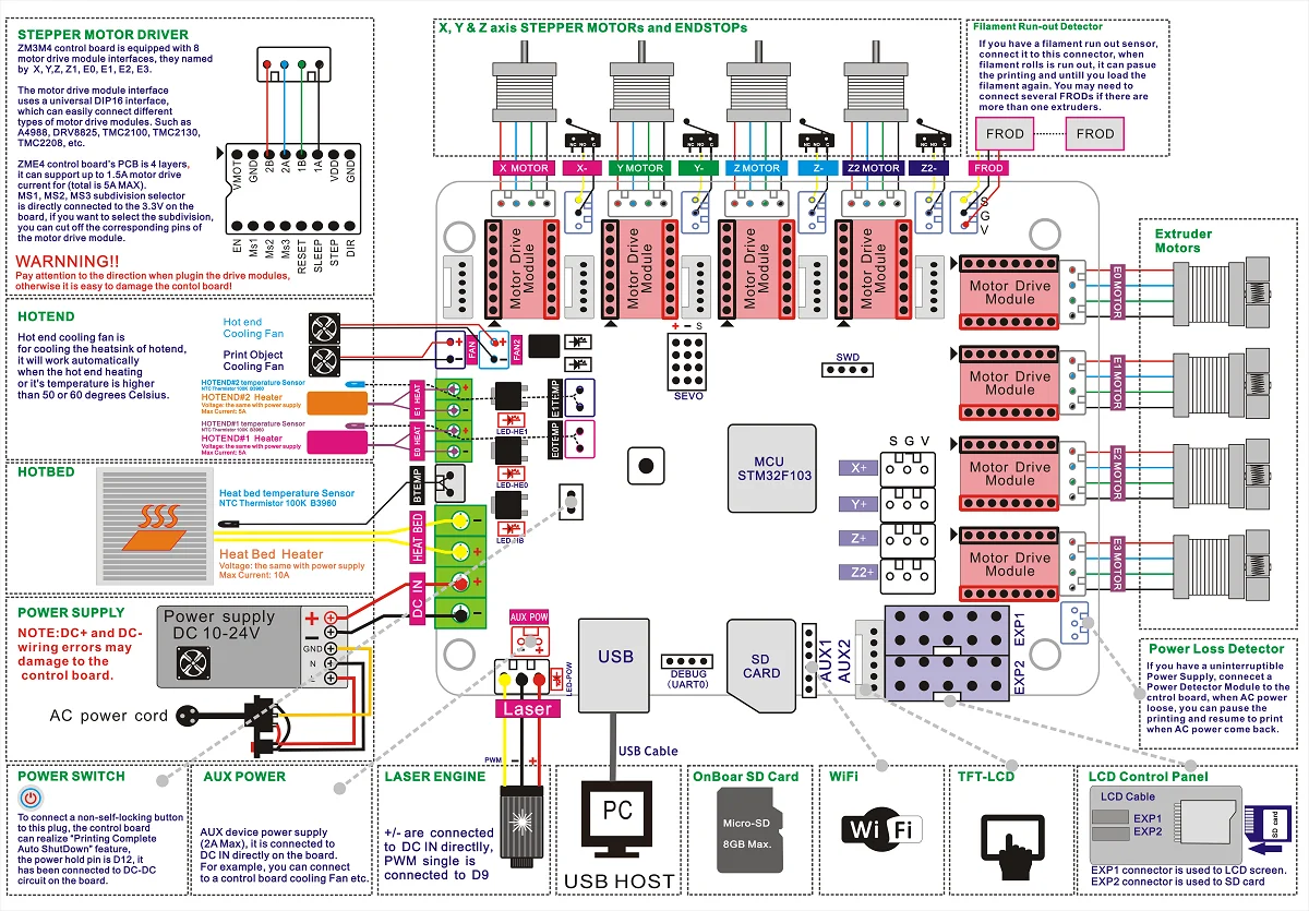 | ZM3E4С 4x4988 | 1 шт. плата управления ZM3E4 с 4 4988 шаговыми модулями (X + Y + Z + E) |