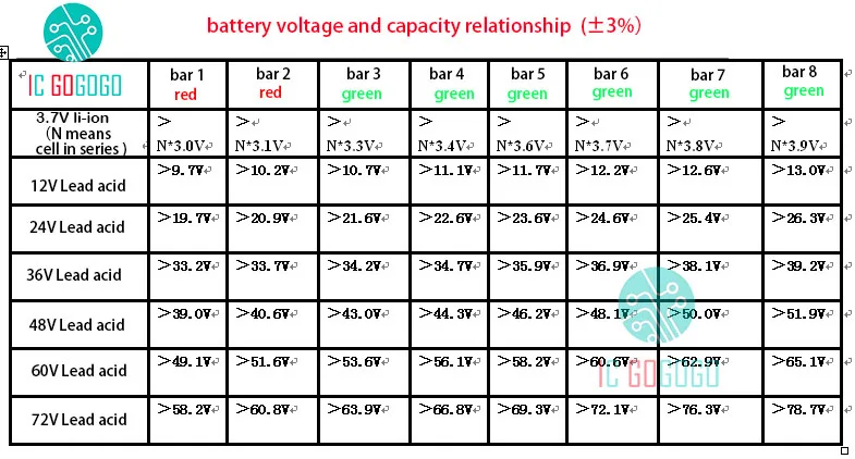 [Special attention] The surge voltage on the car, inverter, motor and other equipment is too high, please be sure to choose the 30V withstand voltage type, otherwise the damage is at your own risk! [Latest improvement] 1. The latest 30V withstand voltage option has been added. If your battery is used to connect motors, inverters, cars and other devices with high surge voltage, be sure to choose the 30V withstand voltage option; all the more than 4S are with a withstand voltage of 30V chip; 2, Increase the single one cell lithium battery option, from now on the single one cell lithium battery can also be used, increase the boost output 5V 2A circuit. 3. Increase the under-voltage warning function, the 12.5% light flashes when the battery has only the last level of power! At this time, it is best to stop the voltage and charge! 4. The latest addition of the three-display function option. The three-display refers to the addition of the digital power percentage display function on the basis of the original pictographic power display and digital voltage display. The function of displaying the voltage value of 2 seconds and the percentage value of 2 seconds can be realized by the 2 second jump. Every cusomer is welcome to choose.