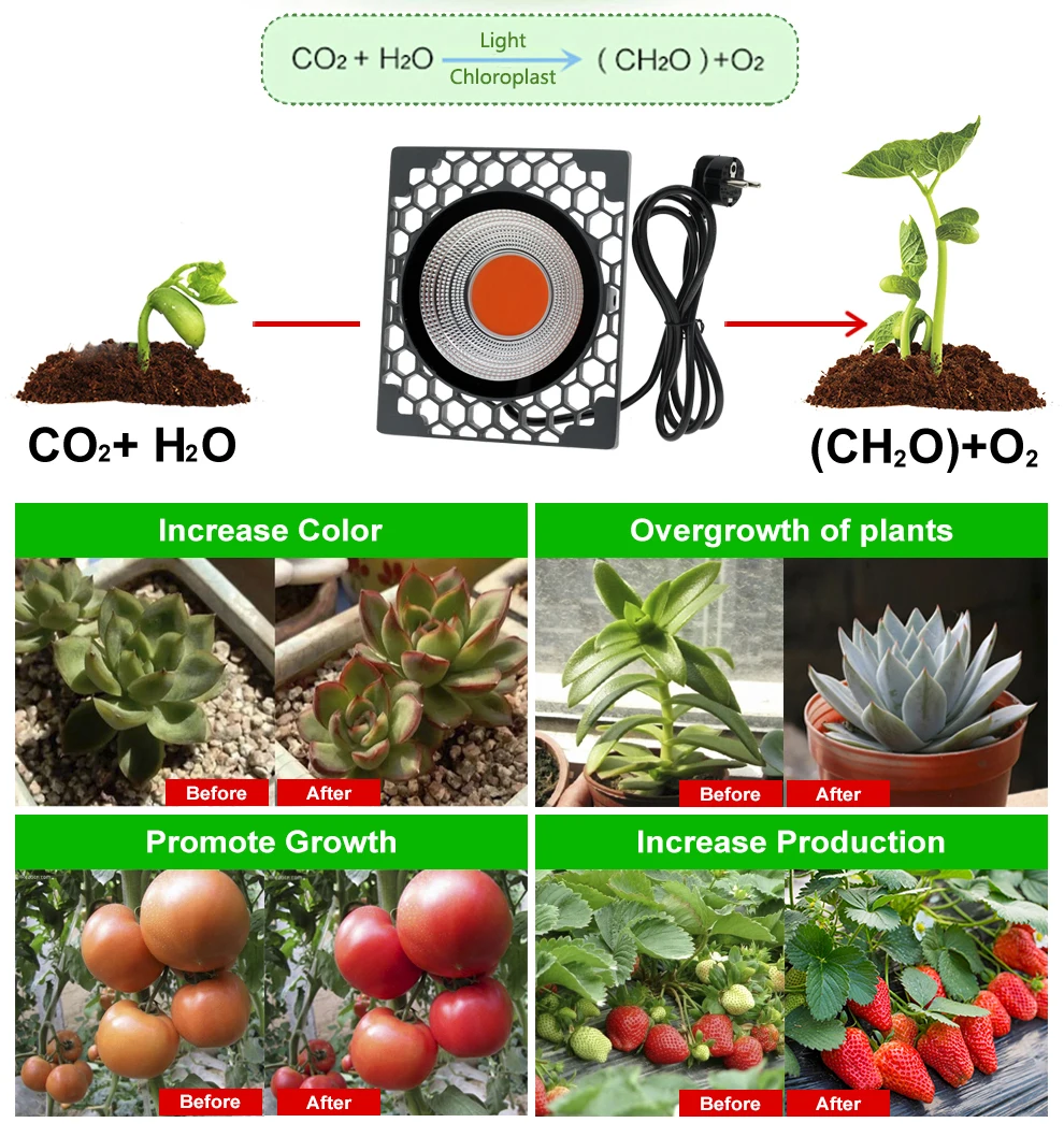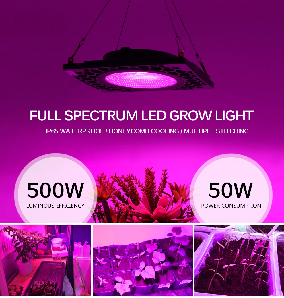 Светодиодный светильник для выращивания растений W Надежный профессиональный светодиодный светильник COB с полным спектром растений. Высокая светоотдача 500 ВтНизкий Потребляемая мощность 50 Вт Полный спектр: 395-830nm