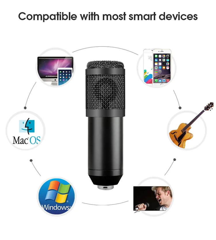 С помощью штепсельной вилки USB можно напрямую подключить к компьютеру или ноутбуку (подходит для Mac и Windows , XP) через порт USB для легкой записи музыки или подкастов. Совместим с различными компьютерными версиями программного обеспечения, караоке, Играйте в игры, живите, общайтесь, записывайте, наслаждайтесь всей сценой.