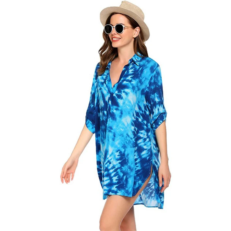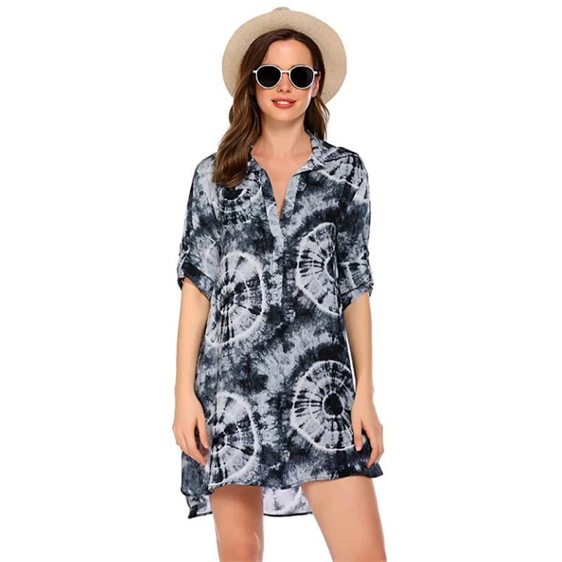 Новинка Пляжная накидка с принтом накидка на бикини Женская пляжная Рубашка летнее пляжное платье Женская Туника размера плюс купальник накидка пляжная одежда
