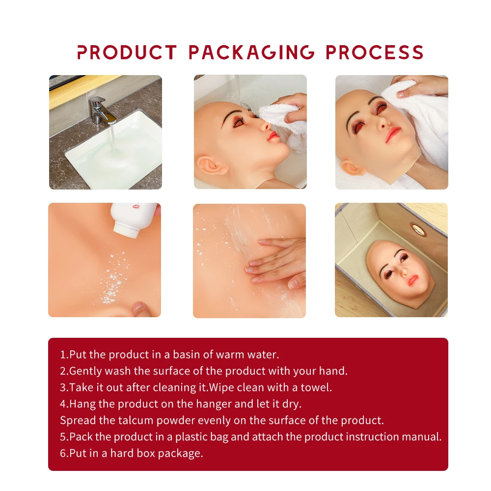 3. Мы рекомендуем держать маску на поролоновой головке, когда вы не используете ее, чтобы сохранить форму и сохранить ее в безопасности. Вы также можете присыпать тальк в маске, прежде чем вытягивать его на Пенную головку.