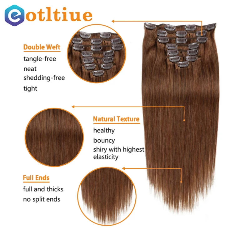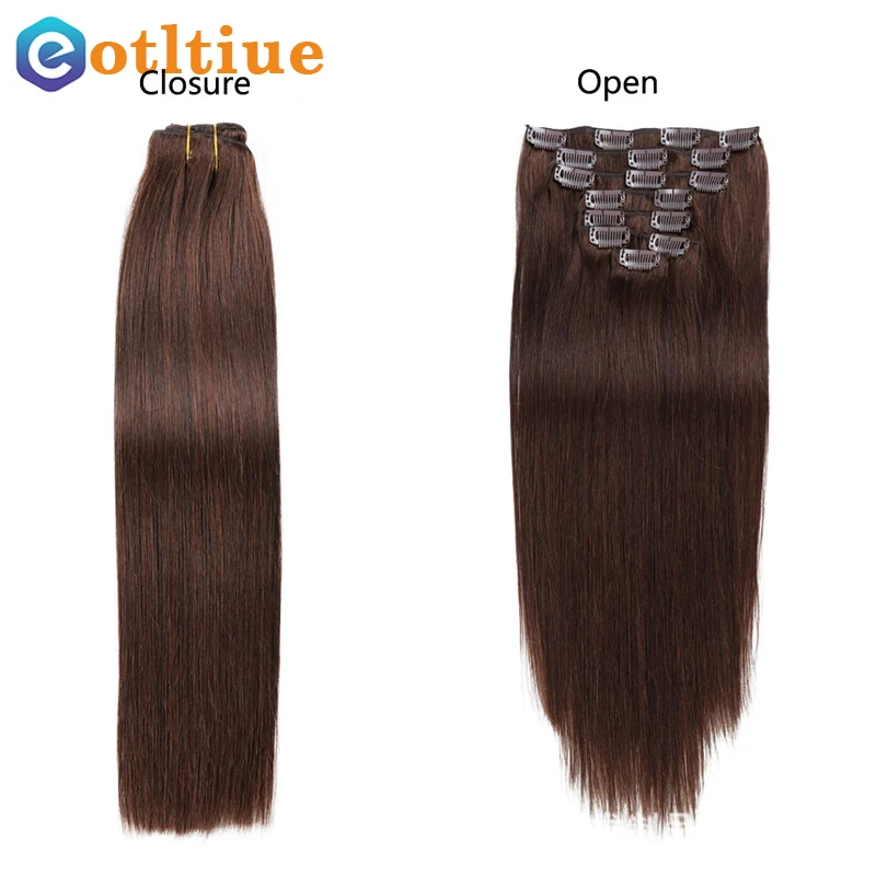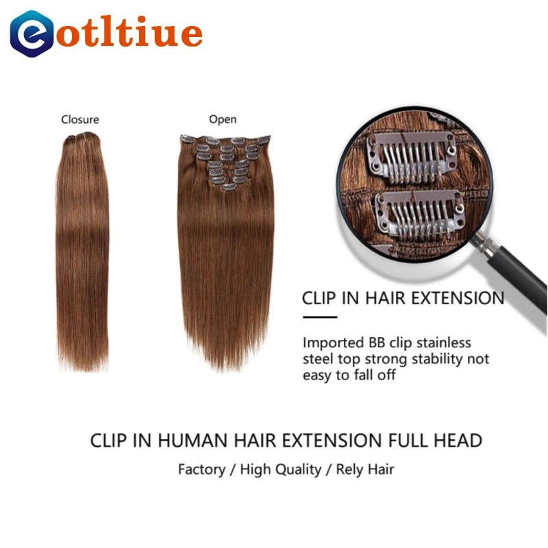 Eotltiue прямые волосы на заколках для наращивания, человеческие волосы для наращивания, комплекты с полной головкой, 100% человеческие цветные волосы на заколках, 8а бразильские волосы Remy