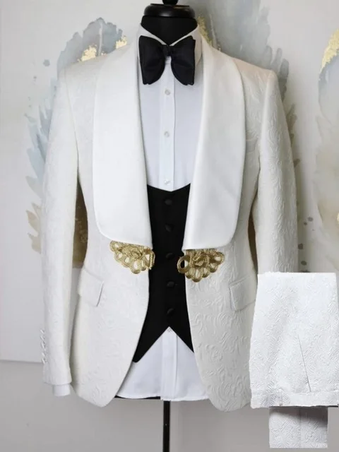 Костюм Homme, цвета слоновой кости, мужские костюмы, смокинги для жениха, шаль, отворот, жених, мужской свадебный Блейзер, мужской блейзер (пиджак + брюки + жилет)