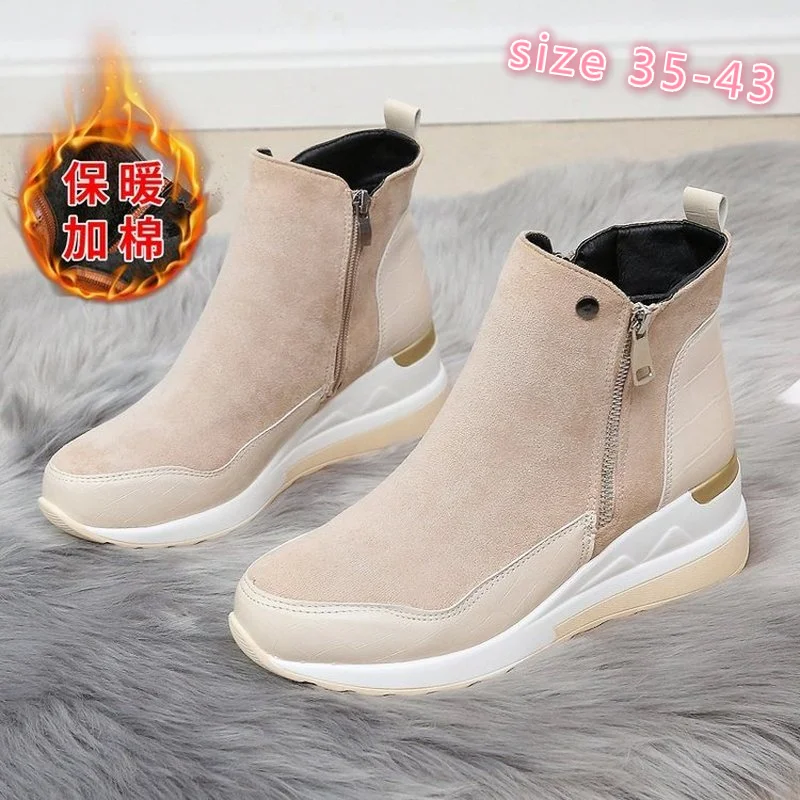 Короткие ботинки женская зимняя новая женская обувь с высоким берцем больших размеров повседневная спортивная обувь на танкетке с боковой молнией обувь для увеличения роста
