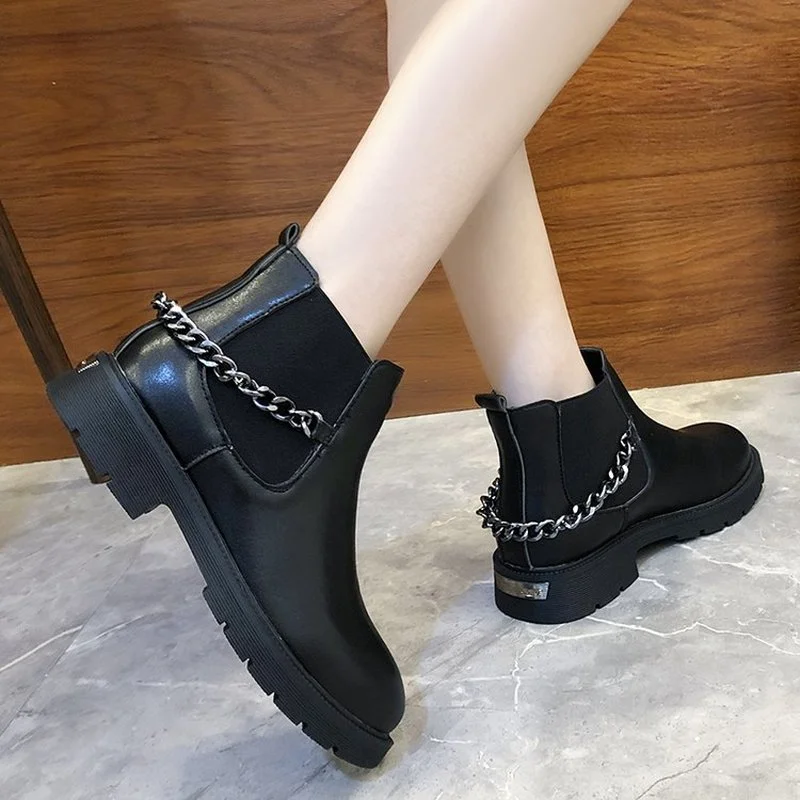Красные ботинки Martin в том же стиле; Женские кожаные короткие ботинки «Челси» на толстой подошве; Женские ботинки-трубы с железной цепочкой, увеличивающие рост