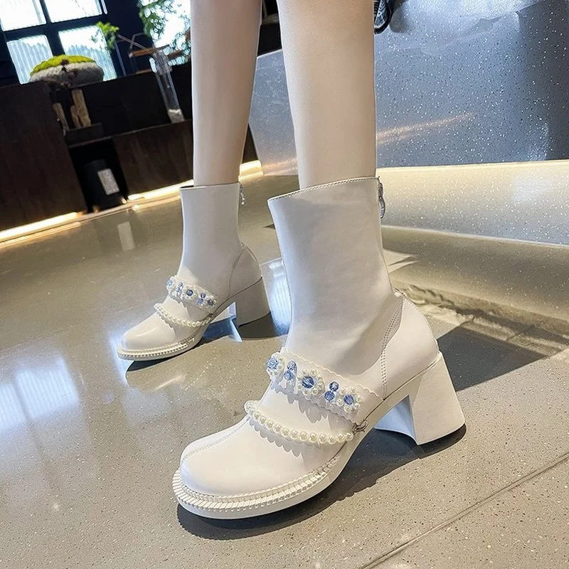 Ботинки женские короткие ботинки новые весенние белые сапоги в британском стиле с круглым носком на среднем каблуке, подходят для интернет-знаменитостей