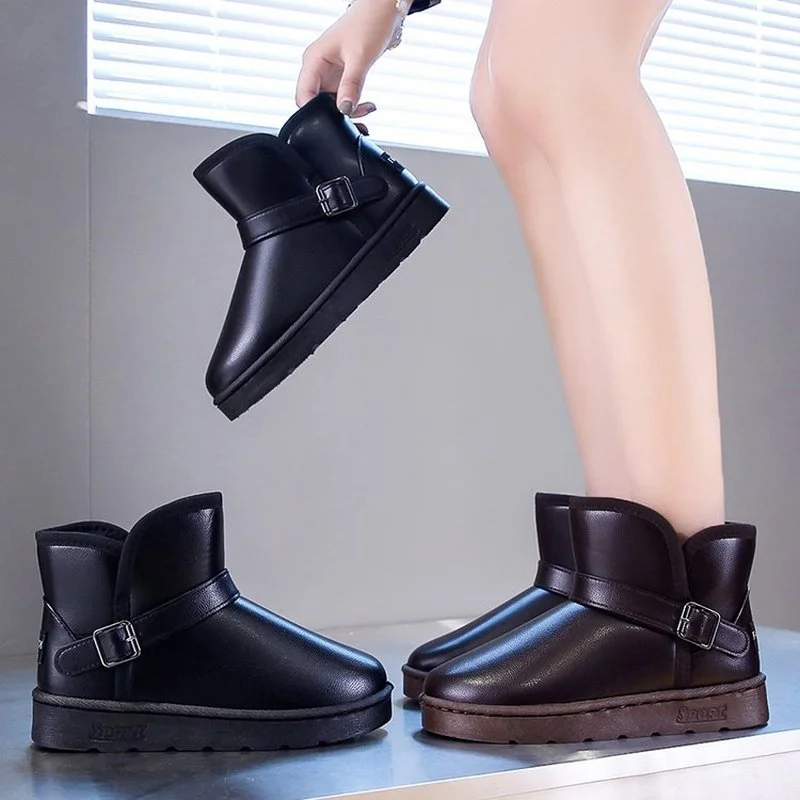 Женские зимние ботинки; Новинка 2021 года; Женская универсальная хлопковая обувь с пряжкой; Корейские студенческие бархатные полуботинки большого размера плюс