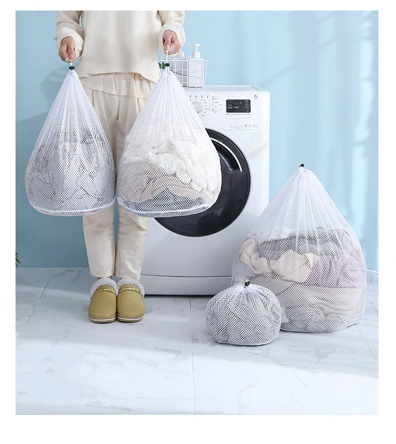 4 шт., сетчатый мешок большой емкости для стирки одежды, уход за стиркой, защитная сетка, нижнее белье, пальто, занавеска, корзина для белья на шнурке