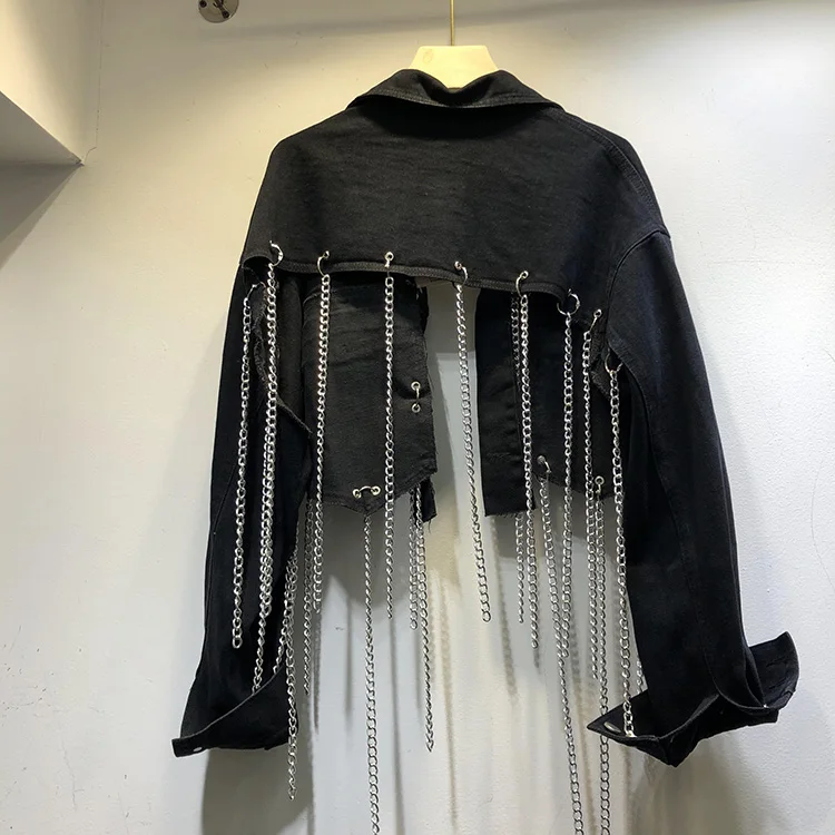 Цепь джинсовые шорты с кисточками куртки Сезон весна осень Хай стрит