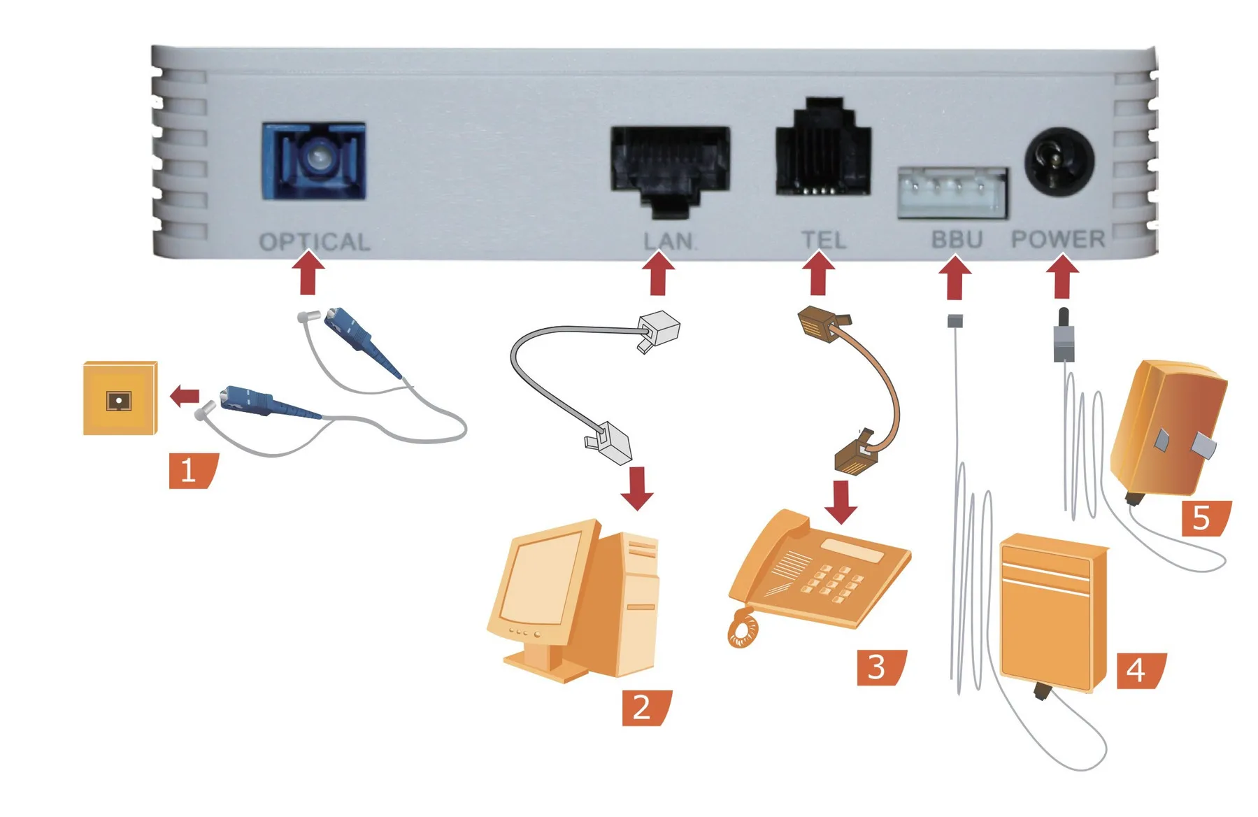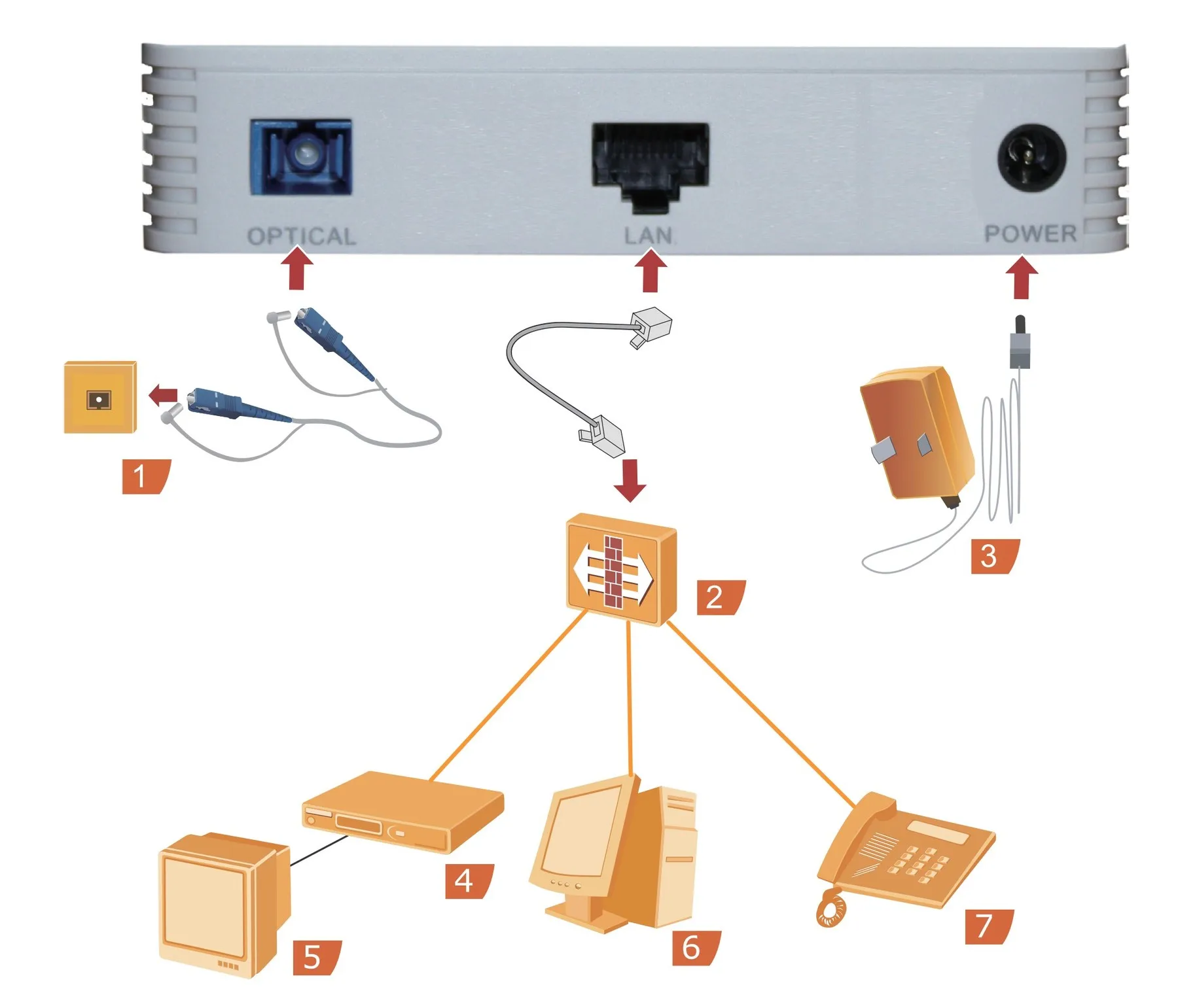 1.Оптический порт на стене2.Домашний шлюз3.Адаптер питания