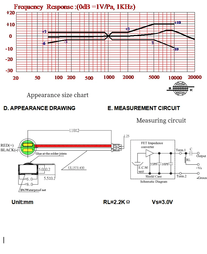 10 шт. * Микрофон (белая Водонепроницаемая сеть прилагается по умолчанию, длина кабеля: 135 мм)