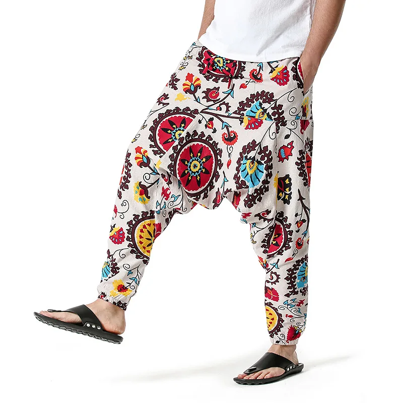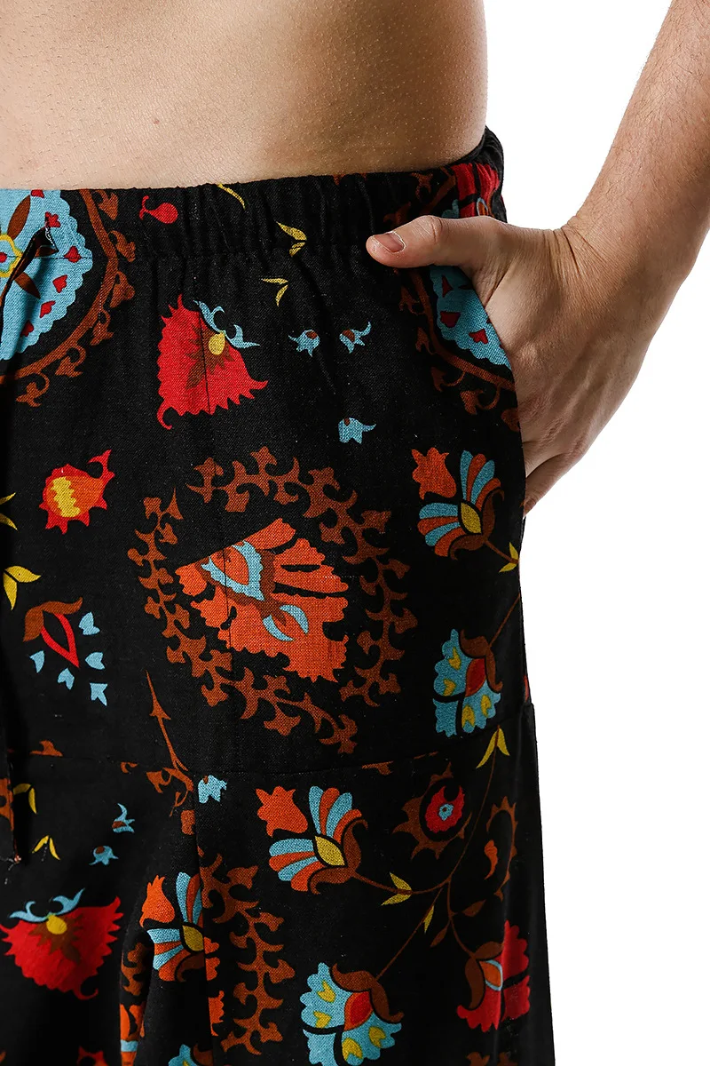 Штаны льняные черные коричневые летние свободные V77 брюки "Непал" | Мужская