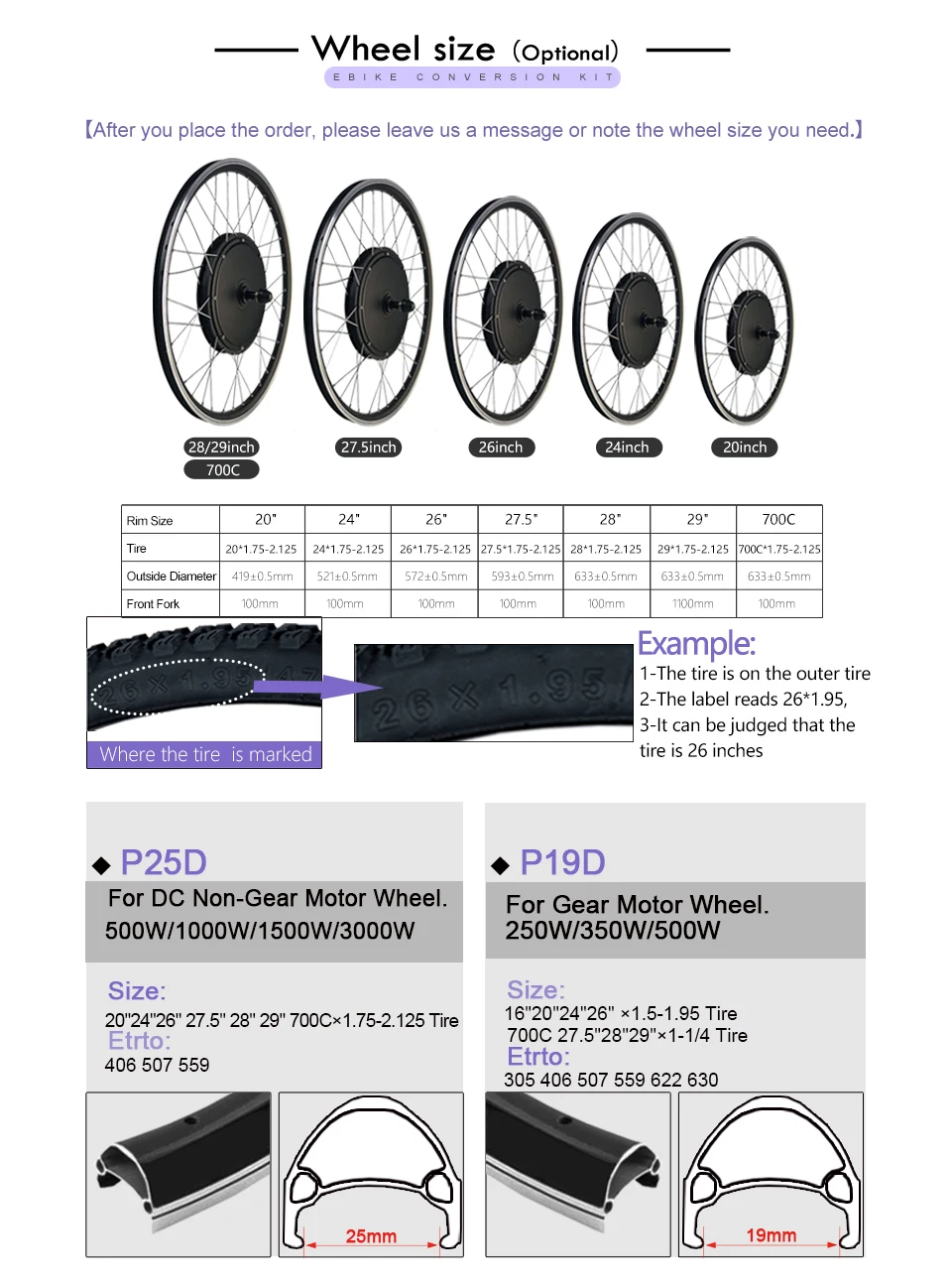 ※-The conversion kitdoesnot include batteries,freewheel,tires, disc brakes, and Torque Arm Amplifier.(If youneed batteries,freewheel,tires, disc brakes, Torque Arm Amplifier, please contact us for additional costs) If you choose "wheels only", there is only one electric wheel, without any other accessories;