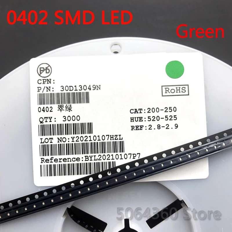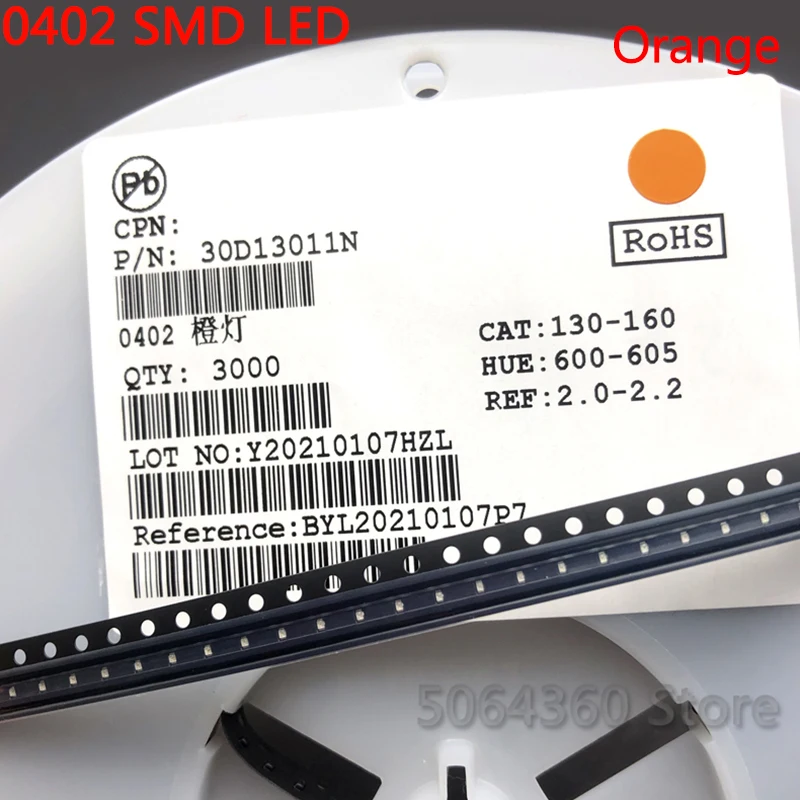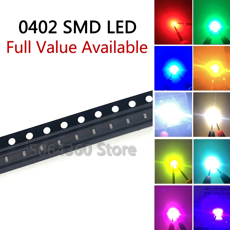 3000 шт полный барабан 0402 SMD светодиодный светоизлучающий диод Выбор цвета: белый, теплый белый, холодный белый, красный, зеленый, синий, желтый, розовый, оранжевый, желто-зеленый, фиолетовый, светло-голубой