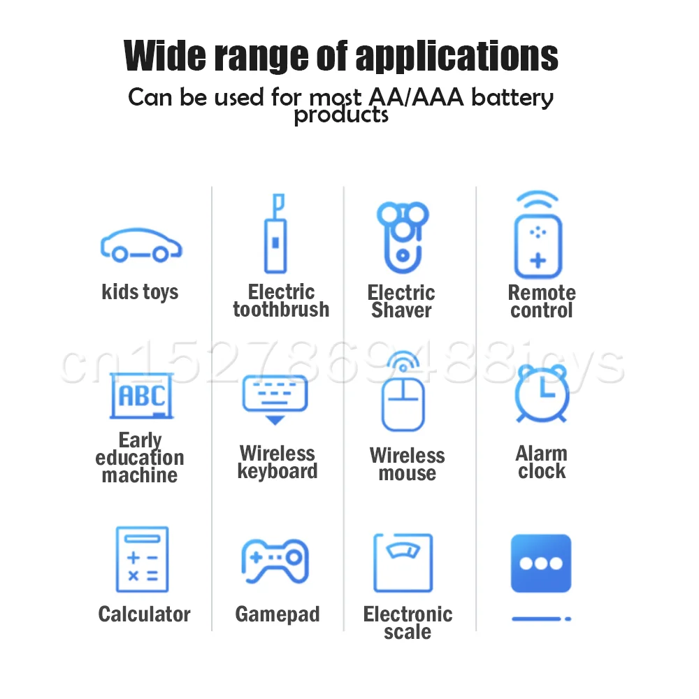 Подходит для портативных лент и ТВ-пультов дистанционного управления, часов и радиоприемников, видеоигр, дымовых сигнализаций, КПК, фонарей, dvd-дисков, MP3 и цифровых камер, беспроводных телефонов, электрических игрушек и т. д.