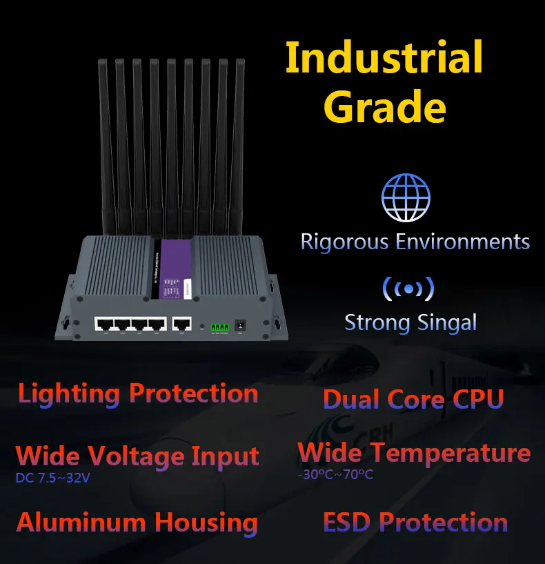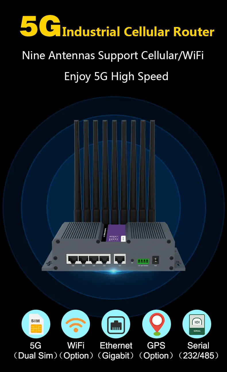 Промышленный 5G NR 4G Cat20 Dual Sim маршрутизатор с 5 гигабитными портами Ethernet высокая скорость для IoT M2M приложений