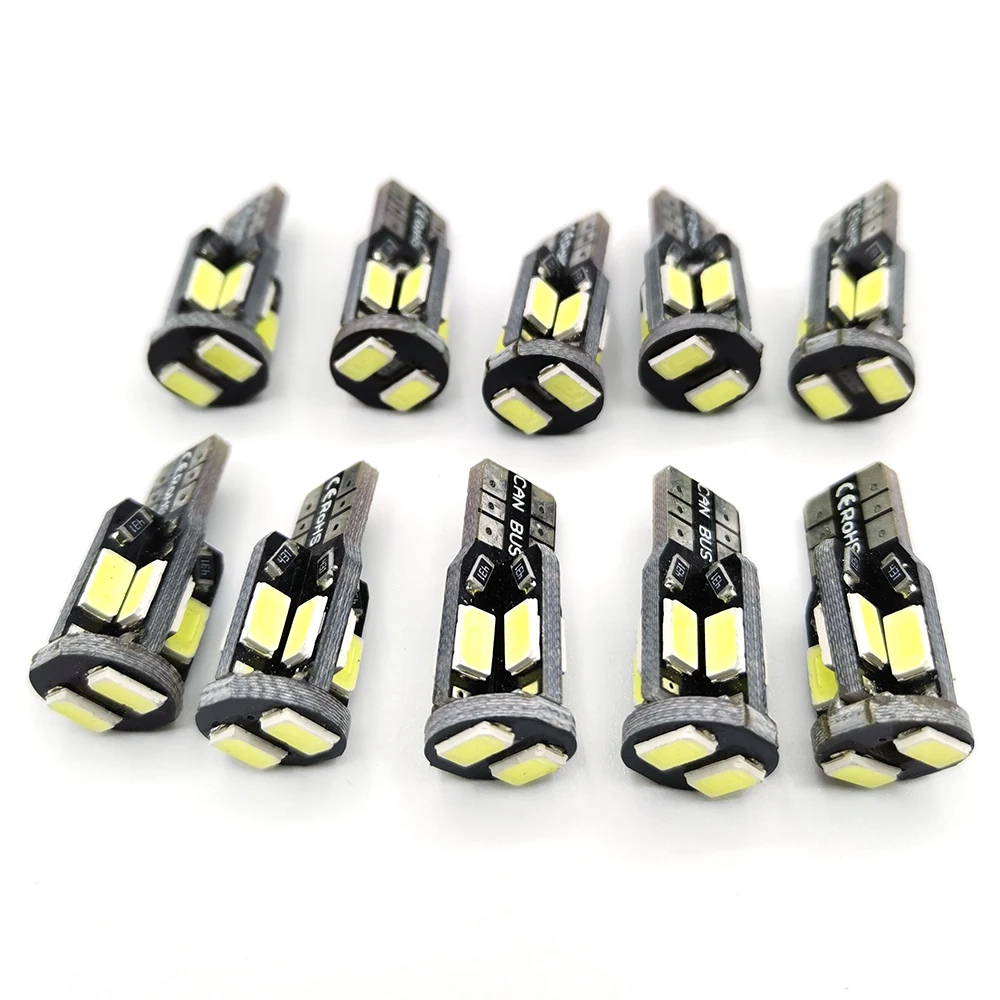 10 шт., светодиодная лампа T10 W5W 5630 5730 SMD 168 194, автомобильные аксессуары, габаритные огни, лампа для чтения, лампа для салона автомобиля, 12 В, белый, 6000K, двигатель