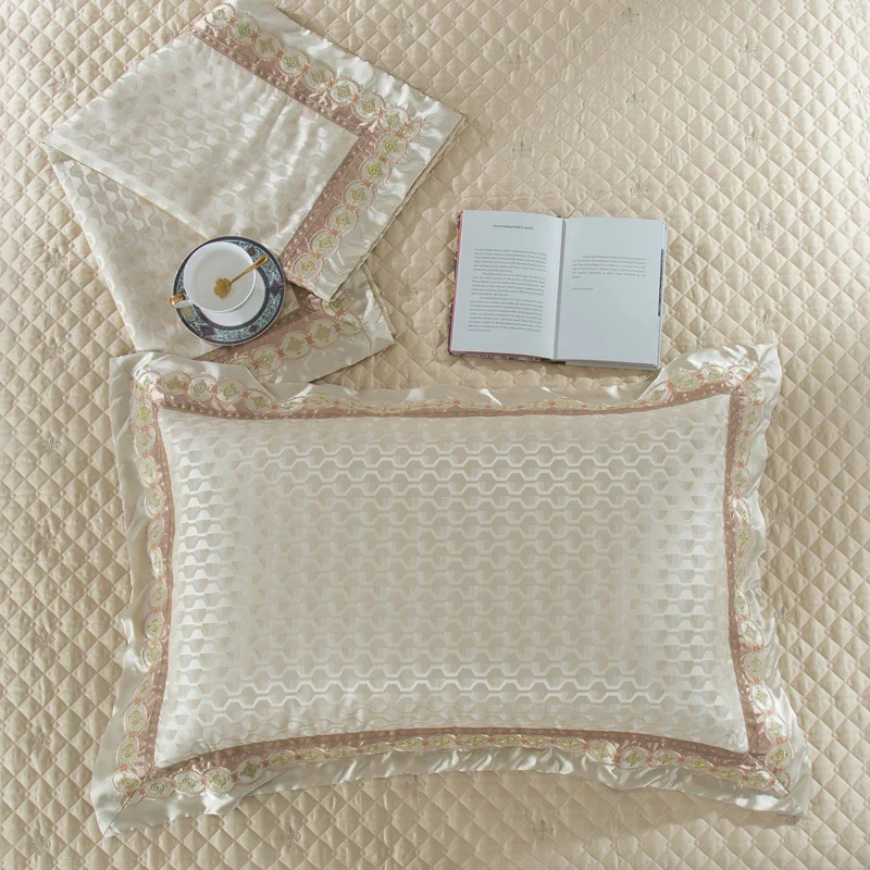 Material: Satin jacquard and Egyptian cotton fabric4Pcs Queen Size ( suitable for 1.4~1.8m width bed) 1 piece Duvet Cover: 200*230cm(79*91inches)1 piece Embroidery Bed sheet:250*250cm(99*99inches)2 pieces Pillowcases:48*74cm(19*30inches)6Pcs Queen Size ( suitable for 1.4~1.8m width bed) 1 piece Duvet Cover: 200*230cm(79*91inches)1 piece Embroidery Bed sheet:250*250cm(99*99inches)2 pieces Pillowcases:48*74cm(19*30inches)2 pieces Cushion cover: 60*60cm(24*24inches)10 Pcs Queen Size ( suitable for 1.4~1.8m width bed) 1 piece Duvet Cover: 200*230cm(79*91inches)1 piece Embroidery Bed sheet:250*250cm(99*99inches)1 piece thick bedspread:250*270cm(99*106inches)2 pieces Pillowcases:48*74cm(19*30inches)2 pieces Cushion cover: 60*60cm(24*24inches)2 pieces Envelopes pillowcases:48*74cm(19*30inches)1 piece small pillow with core4Pcs King Size ( suitable for 1.8~2.0m width bed) 1 piece Duvet Cover: 220*240cm(87*95inches)1 piece Embroidery Bed sheet:250*270cm(99*106inches)2 pieces Pillowcases: 48*74cm(19*30inches) 6Pcs King Size ( suitable for 1.8~2.0m width bed) 1 piece Duvet Cover: 220*240cm(87*95inches)1 piece Embroidery Bed sheet:250*270cm(99*106inches)2 pieces Pillowcases: 48*74cm(19*30inches)2 pieces Cushion cover: 60*60 c