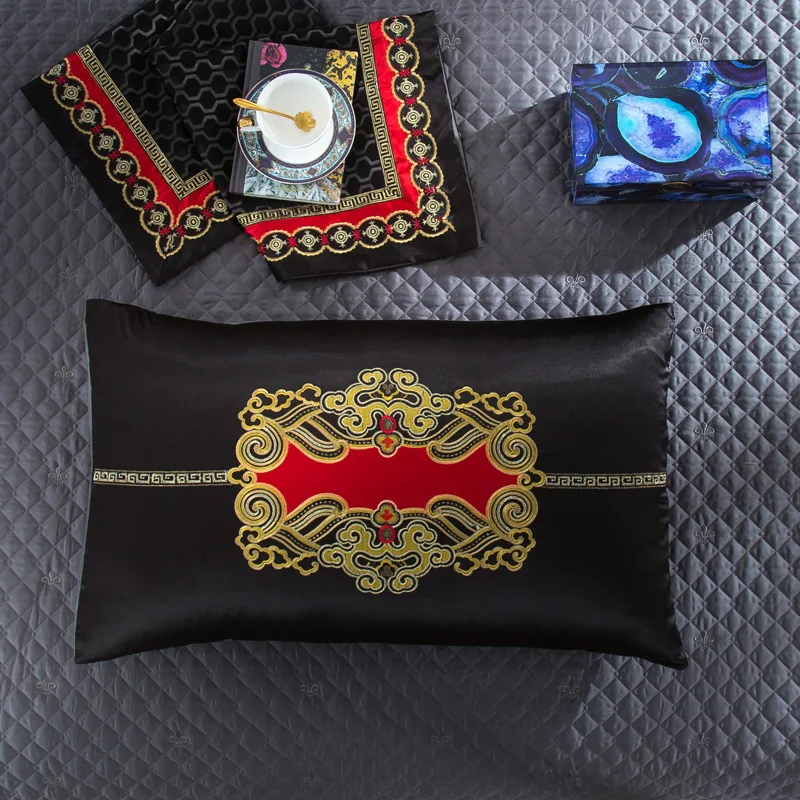 Duvet cover outer side is made of embroidered satin jacquard fabric. silky and soft fabric.Duvet cover inner side and bed sheet is made of 100%cotton fabric.