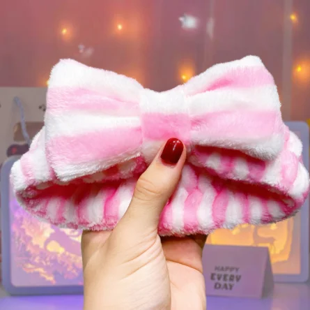 Милая повязка на голову из кораллового флиса с бантиком и крестиком для мытья лица, макияж для женщин, маска для ванной в горошек, разноцветные аксессуары для волос, повязки для волос