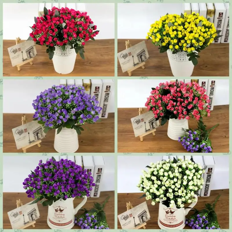 36 головок/букет искусственных цветов мини букет из Розовых бутонов Искусственные цветы декоративные цветы Искусство зал Свадьба Дом Офис искусственные цветы