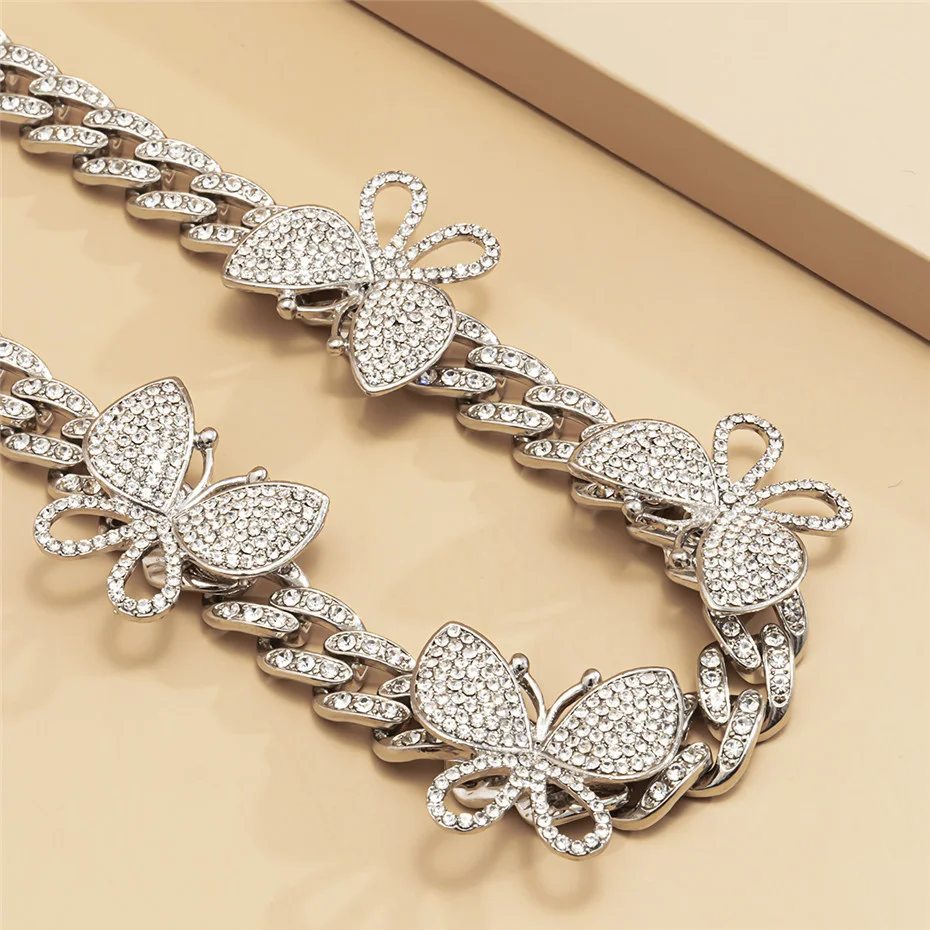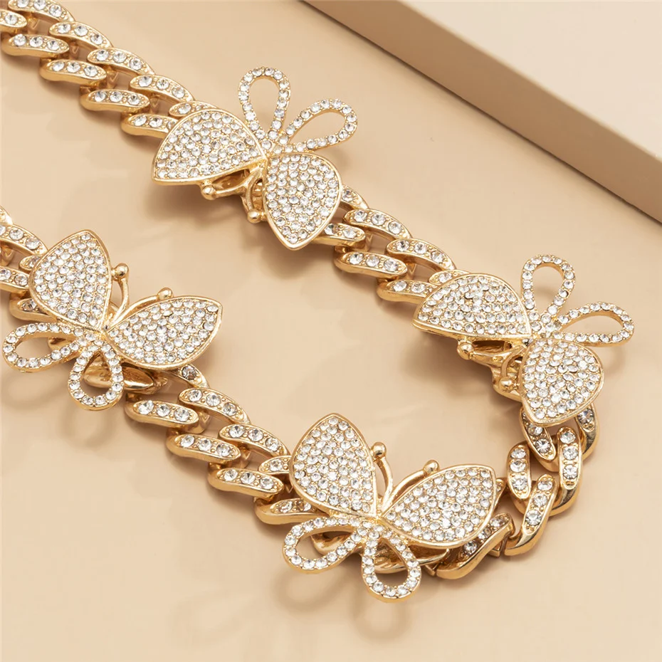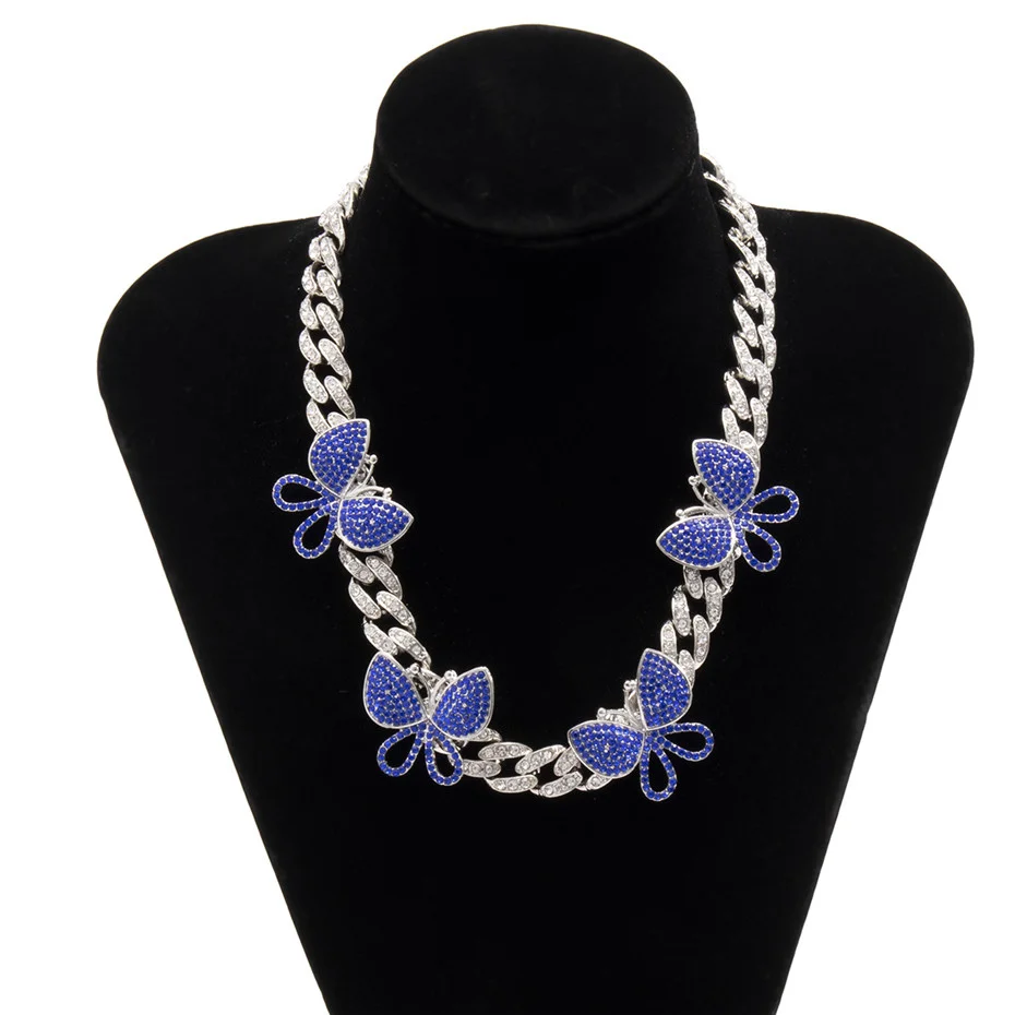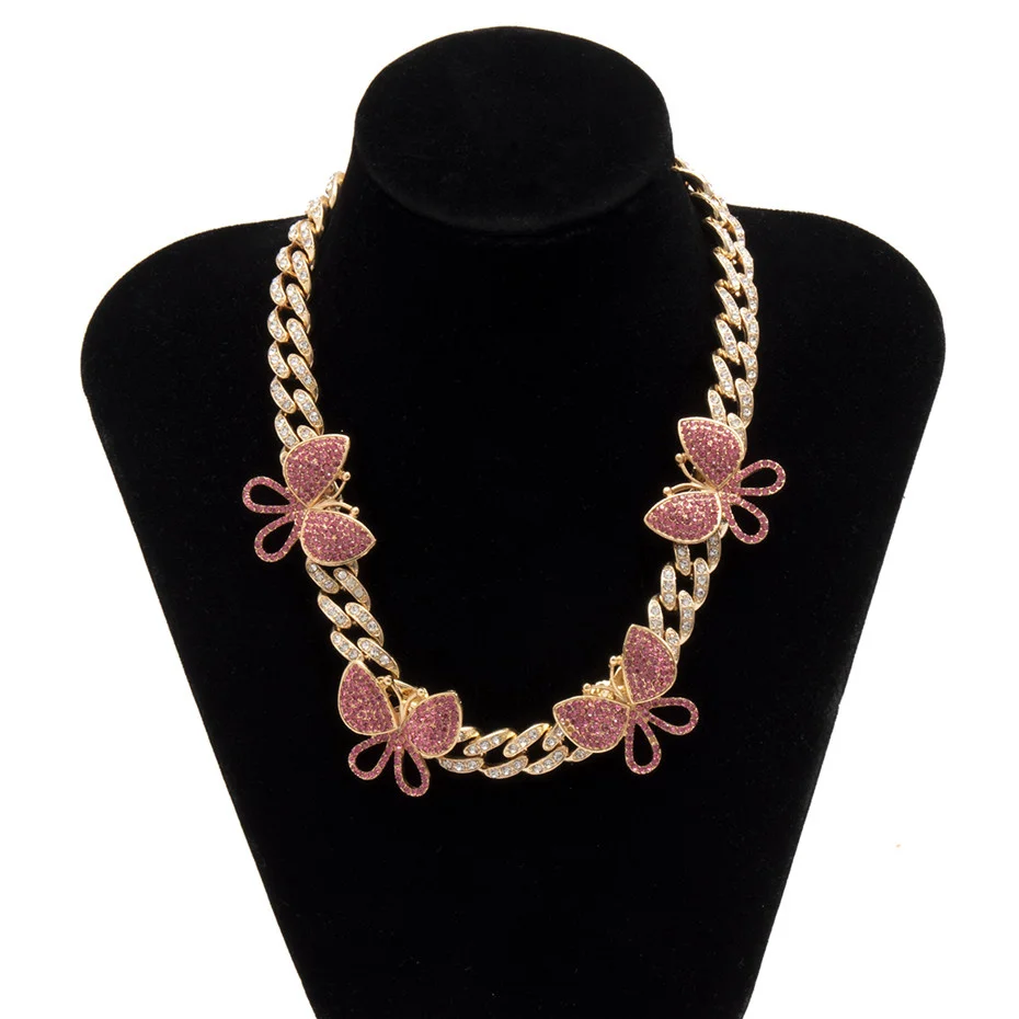 KunJoe хип-хоп ледяной чокер со стразами бабочка Снаряженная кубинская цепочка CZ шикарное ожерелье рэпера роскошные женские ювелирные изделия 2021