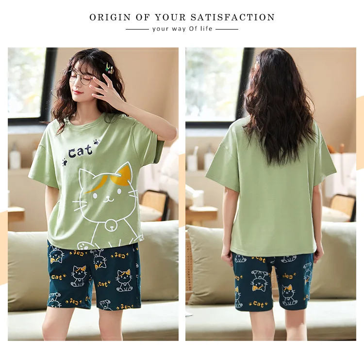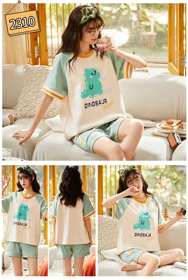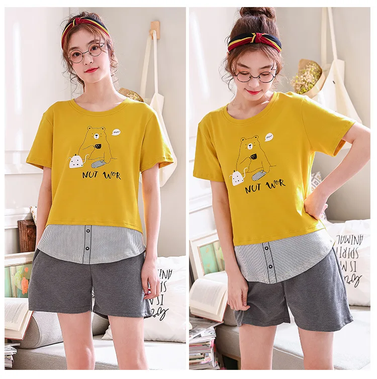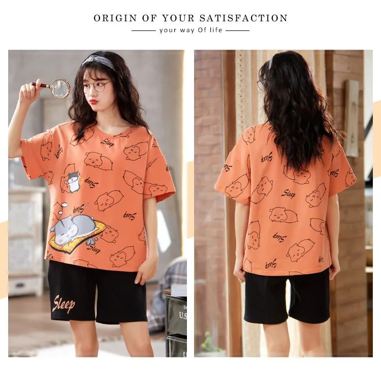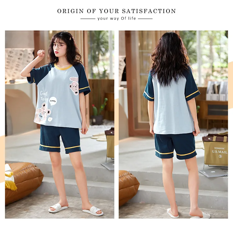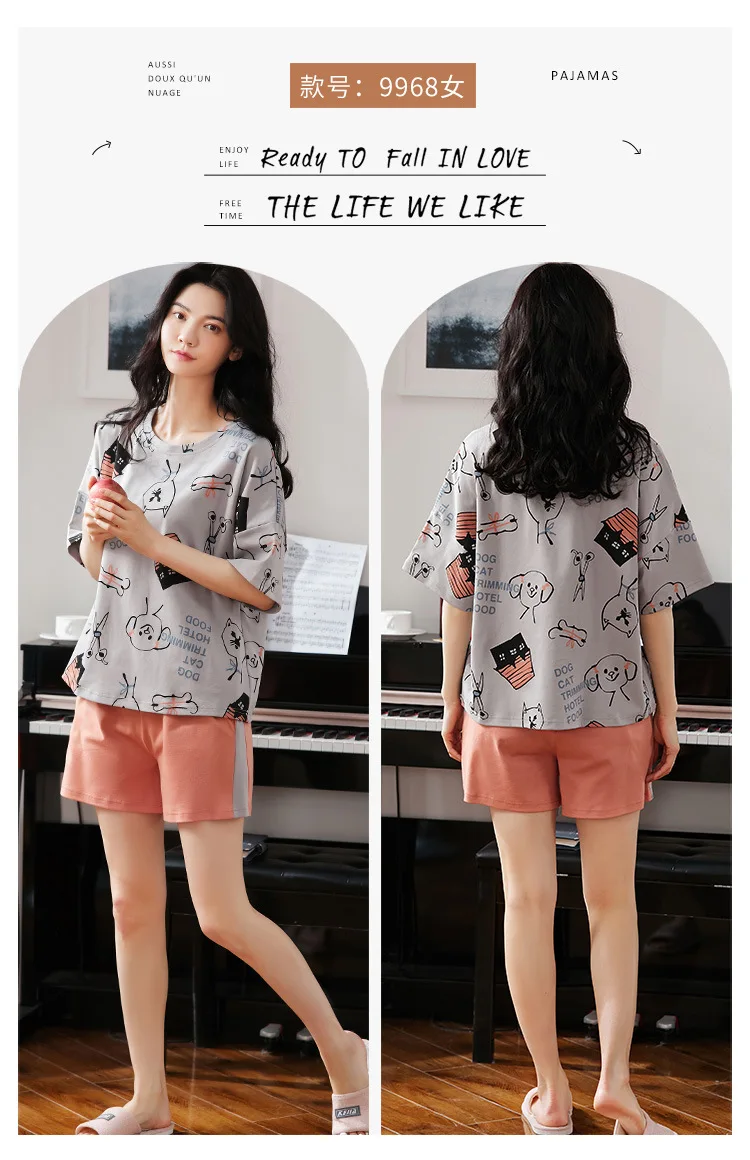 Пижама женская с оборками и круглым вырезом одежда для сна цветочным принтом