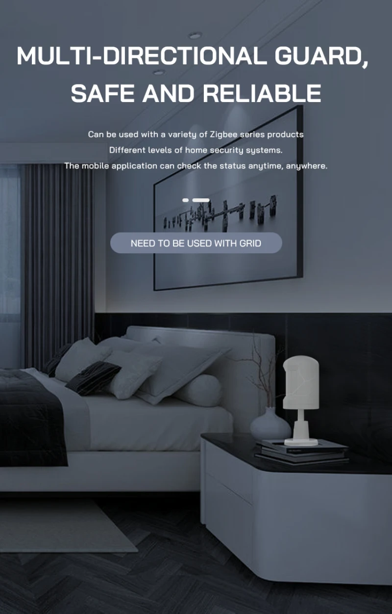 When the device perceives human movement within the detection range, it will transmit the information to the cloud through the gateway, and you can receive real-time alarm pushes on the App. wherever you are, and you will be in control of the movement.