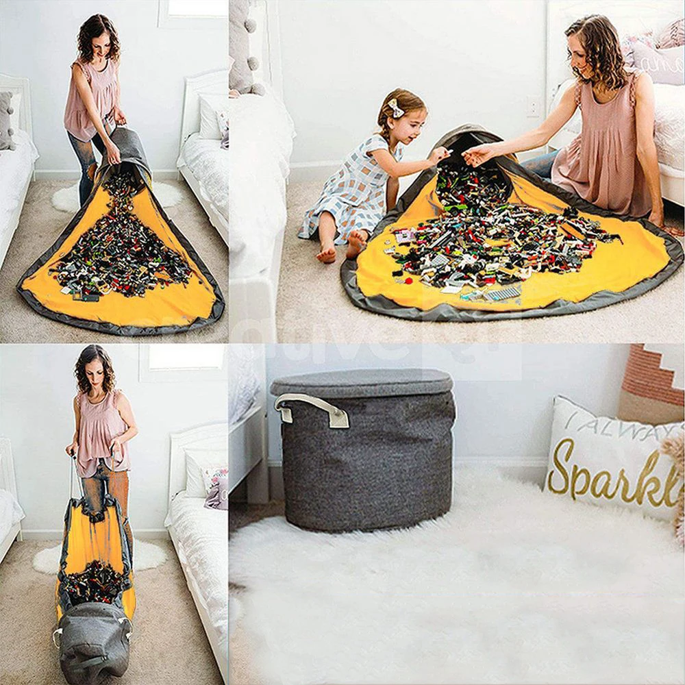 2. Foldable storage bucket bag: You can open it directly and let your children play with toys on the bag. Then fold the bag and you can store the toy in the storage bag quickly and easily.