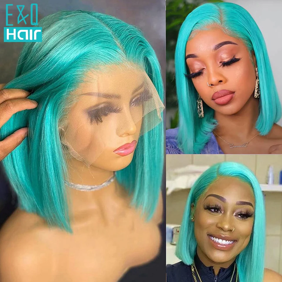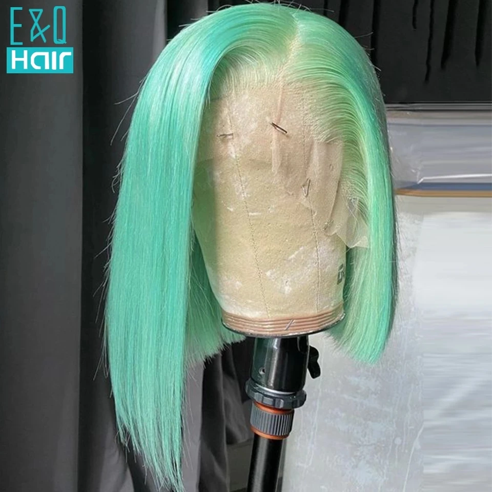 Эффектом деграде (переход от темного к зеленый Цветной Короткие парик Синтетические волосы на кружеве парики из натуральных волос для Для женщин Косплэй прямые Синтетические волосы на кружеве парик 613 HD Синтетические волосы на кружеве al парик