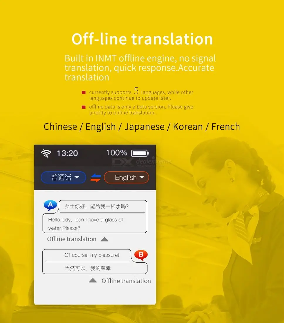 Особенности: K1 Pro интеллигентая (ый) Переводчик: 2,4 дюймов IPS сенсорного экрана, переводчик, поддержка 77 языков взаимного перевода, лицом к лицу крест язык общения проще. Просто нажмите кнопку ввода языка и начните говорить, а затем отпустите кнопку, она автоматически переведет вашу речь на другой язык. Поддержка 5 языков офлайн-перевода. Режим подключения к сети: поддерживает подключение к Wi-Fi/телефону. Больше не возникают проблемы во время поездок за границу или работы с иностранцами. BT4.0 для подключения BT динамика и BT гарнитуры. Перевод и Запись фотографий: Выберите язык и сделайте фотографию текста, который вы хотите перевести, тогда устройство будет автоматически переводить его на соответствующий язык. Поддержка записи перевода, 3 основных языка (китайский (упрощенный)/кантонский/английский (США) могут быть переведены на другие 77 языков по вашему выбору. LeChat перевод: обеспечивает многоадресную онлайн-среду голосовой связи. Он может создать 500 человек, чтобы общаться вместе и поддерживать многоязычный чат без проблем с общением. (Это означает, что другим людям нужен переводчик, который поддерживает функцию LeChat, затем вы можете добавить друг друга через идентификатор переводчика.) Небольшой, но мощный: Встроенный 1280 мАч перезаряжаемый аккумулятор, около 2,5 часов время зарядки, 200 часов в режиме ожидания, 350 минут непрерывного использования. Поставляется с зарядным кабелем, вы можете легко зарядить его с помощью зарядного устройства, компьютера и т. д. легко держать и носить с собой. Подходит для транснациональных поездок, покупок, делового сотрудничества, изучения языков и т. д. Характеристики: Цвет: синий/серый (по желанию) Материал: АБС-пластик + Поликарбонат Экран: 2,4 дюймов IPS сенсорный Экран Поддержка 77 языков, общий перевод: китайский (упрощенный)/английский (США)/английский (Великобритания)/японский/французский/немецкий/арабский (Египет)/Испанский/испанский (Мексика)/Русский/Английский (Австралия)/английский (Канада)/Корейский/тамилский (Индия)/сунданский (Индонезия)/арабский (Бахрейн)/испанский (Гонсалес)/Бенгальский (Индия)/Malayalam (Индия)/румынский/Греческий/Португальский/каталанский/словацкий/сингальский (Шри-Ланка)/Норвежский/телугу (Индия)/арабский (Катар)/испанский (Гватемала)/Маратхи (Индия)/индонезийский/исландский/лаосский/сербский/итальянский/Финский/Малайский/Венгерский/арабский (tunisian)/кантонский/Тамил (Шри-Ланка)/Вьетнамский/арабский (Арабский)/испанский (EI Salvador)/Африкаанс/Турецкий/хинди/английский (Нигерия)/солвенский/Португальский (Бразилия)/Польский/кхмерский (Камбоджа)/Болгарский/английский (Ирландия)/Чешский/Иврит (Израиль)/китайский (традиционный)/французский (Канада)/английский (Индия)/Яванский (Индонезия)/арабский (Иордания)/Арабский (Израиль)/Латышский (Латвийский)/хорватский язык/испанский (США)/Филиппинский (Филиппины)/испанский (Боливия)/непальский/английский (Филиппины)/Датский/Шведский/арабский (Саудовская Аравия)/Бирма/тайский/арабский (Алжир)/голландский/английский (Южная Африка) Офлайн перевод: китайский Упрощенный/английский (США)/японский/французский/Корейский Фотографический перевод: Поддержка 43 Перевод записи: 3 основных языка (китайский/кантонский/английский (США) могут быть переведены на другие 77 языков по вашему выбору. Язык системы: китайский (упрощенный)/Китайский (Традиционный)/японс