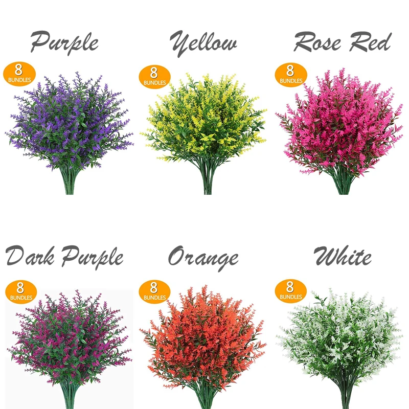 Искусственный-это новый свежий вид: они выглядят почти естественно, если вы не прикасайтесь к ним. Каждый цветок лаванды так же близок к реальным, как может быть, предлагает Настоящие лепестки и текстуры листвы. Искусственные наружные цветы являются отличной альтернативой реальным цветам и будут оставаться свежими и красивыми из года в год!