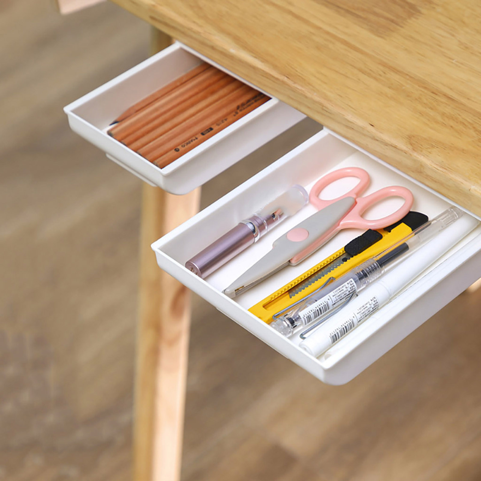 Большая емкость для хранения. Ящик под столом идеально подходит для хранения ручек, линейки, компасов, бумажных полотенец, ножниц, мобильных телефонов и многого другого.