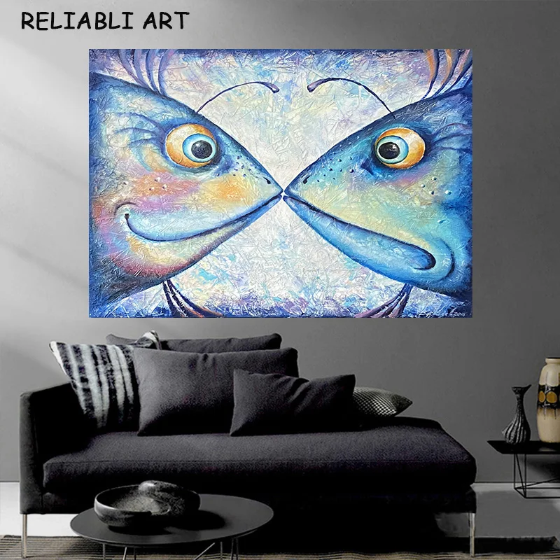 Абстрактная живопись маслом на холсте красочные рыбки постеры с животными и принтами настенные картинки для детской гостиной Декор интерьера без рамки