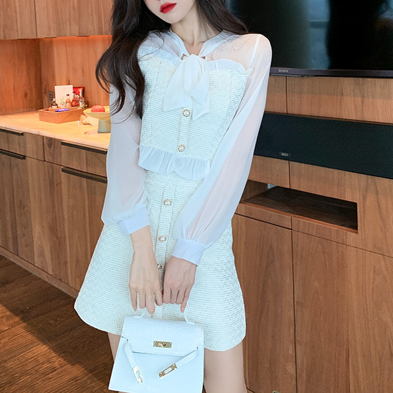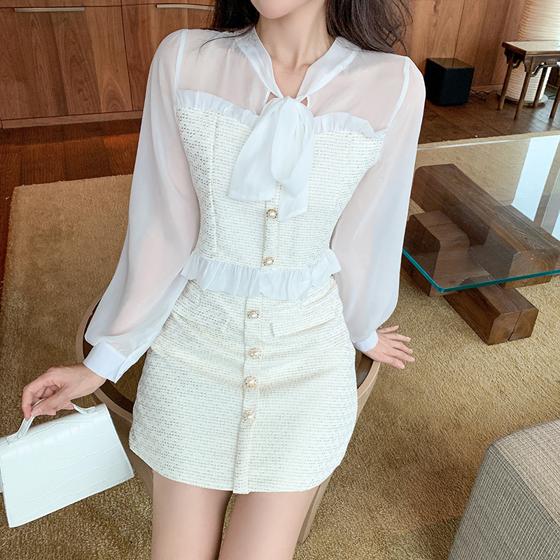 Ezgaga французский стиль Женские рубашки Лоскутные поддельные два винтажные элегантные топы с круглым вырезом с длинным рукавом тонкие женские рубашки милые