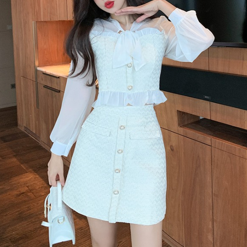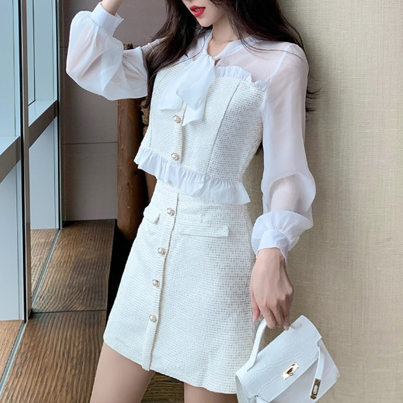 Ezgaga комплект из двух предметов, женские модные белые рубашки, Вязанный свитер, жилет, блузка с воротником, корейские топы, офисные женские комплекты из 2 предметов