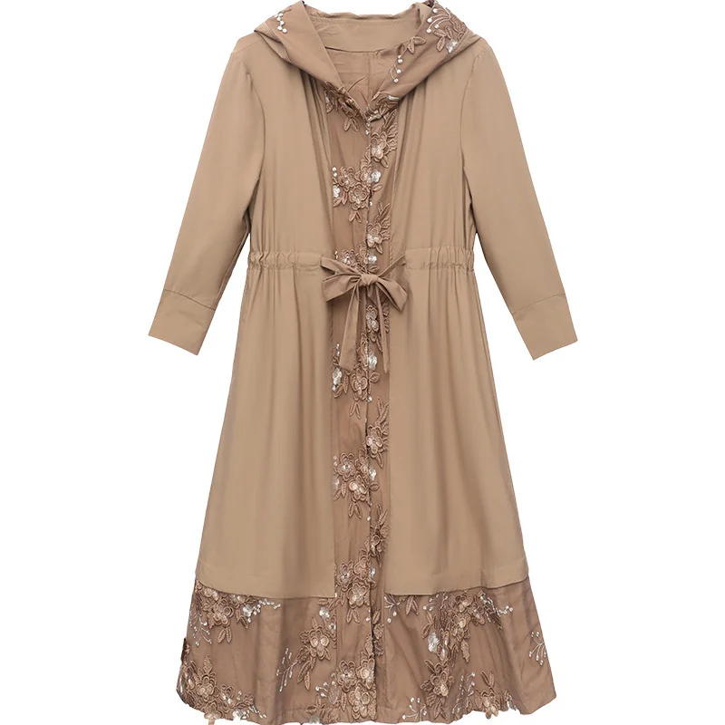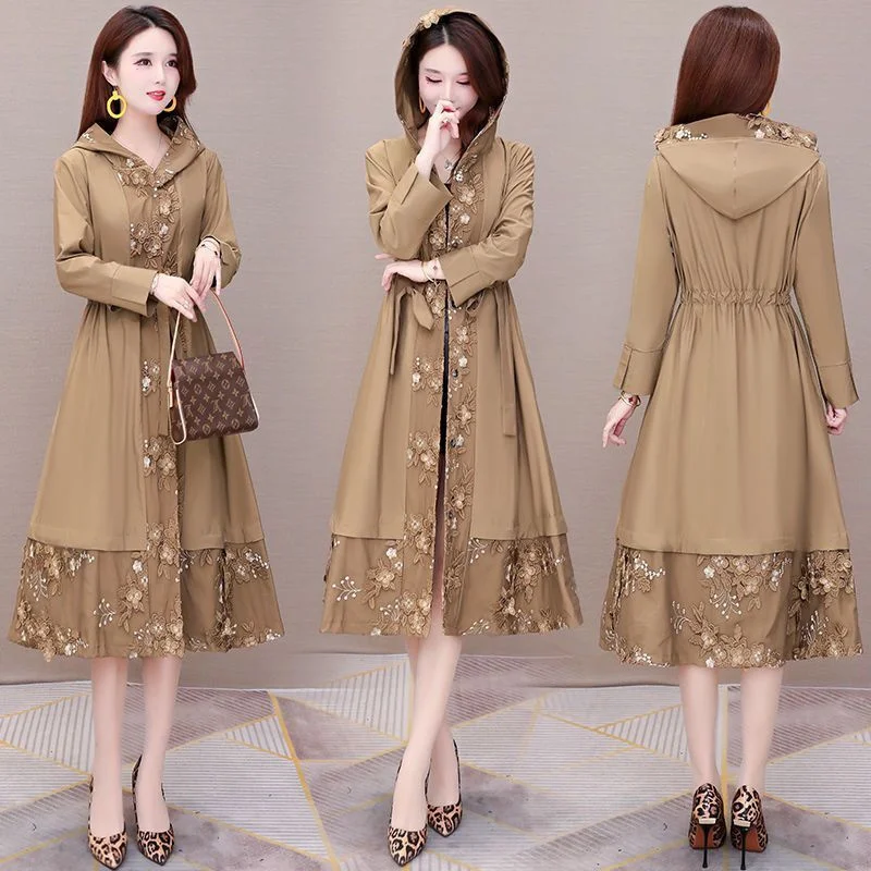 Женский тренчкот весна-осень простроченная ветровка длинная секция Дамский Плащ