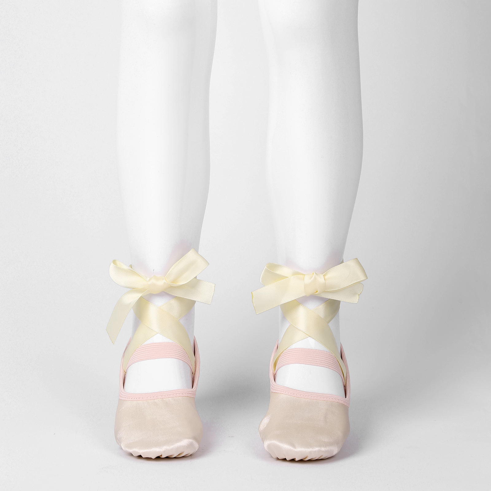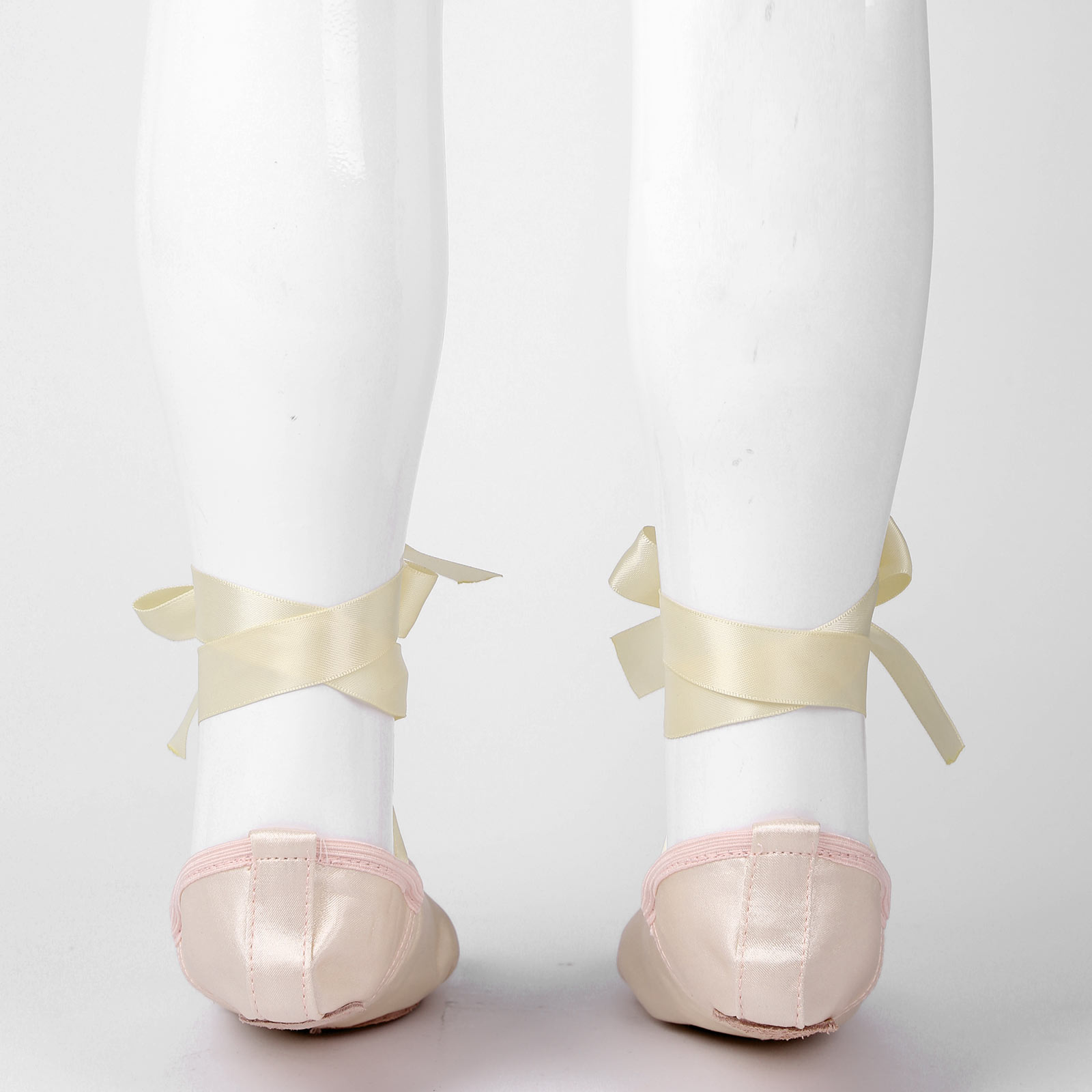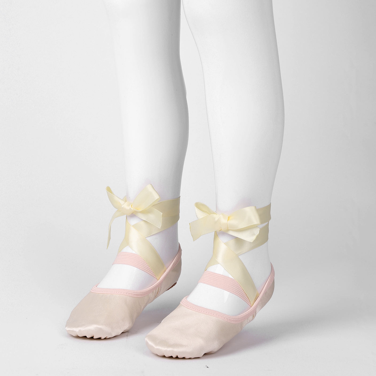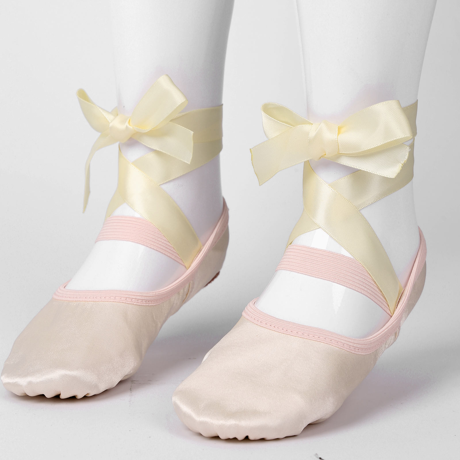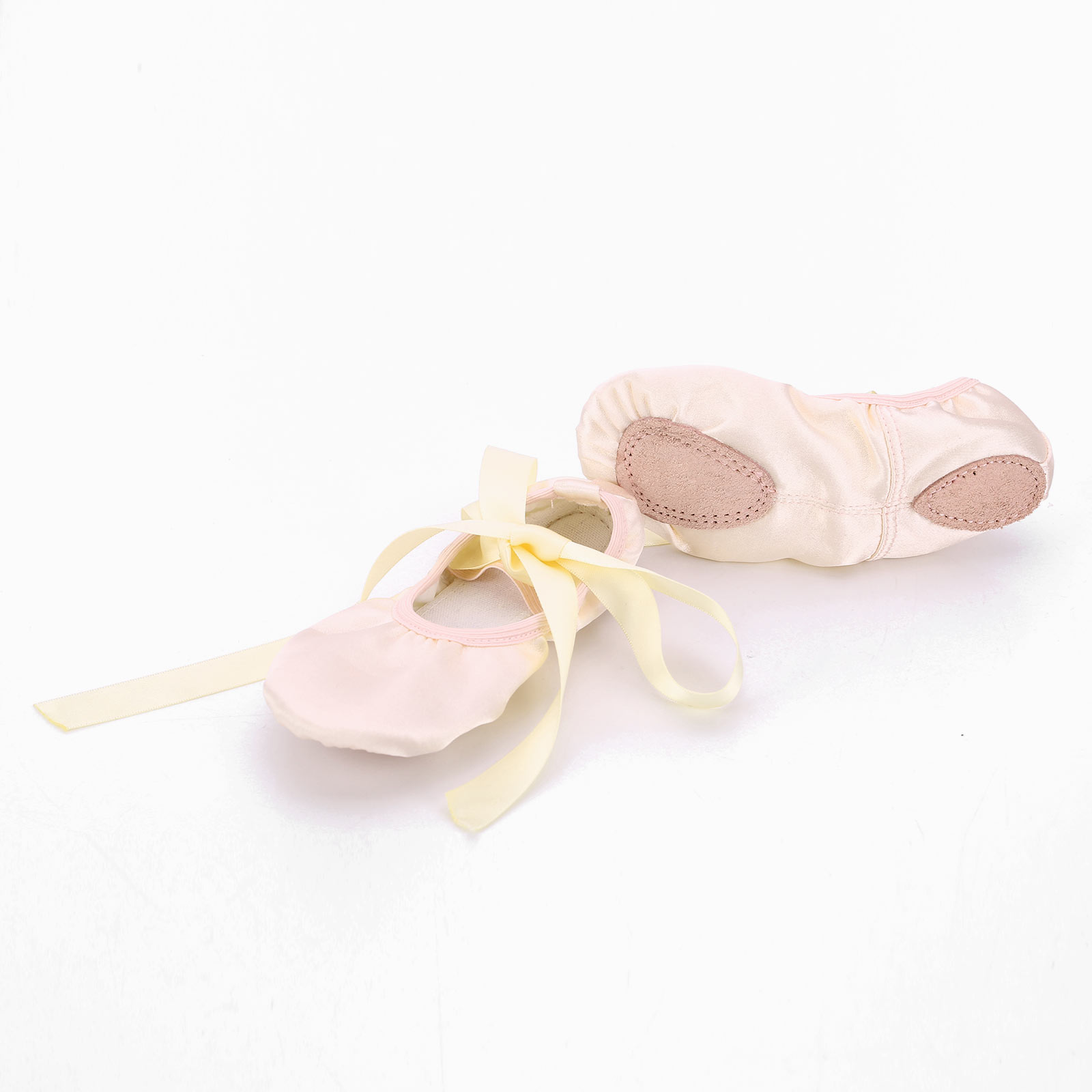 Детская танцевальная обувь для девочек; Обувь для занятий спортом с мягкими ремешками на мягкой подошве; Сатиновые Балетки с круглым носком.