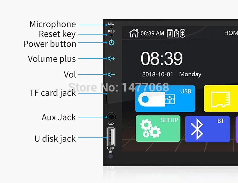 Мультимедийный Интерфейс: USB, TF, Aux