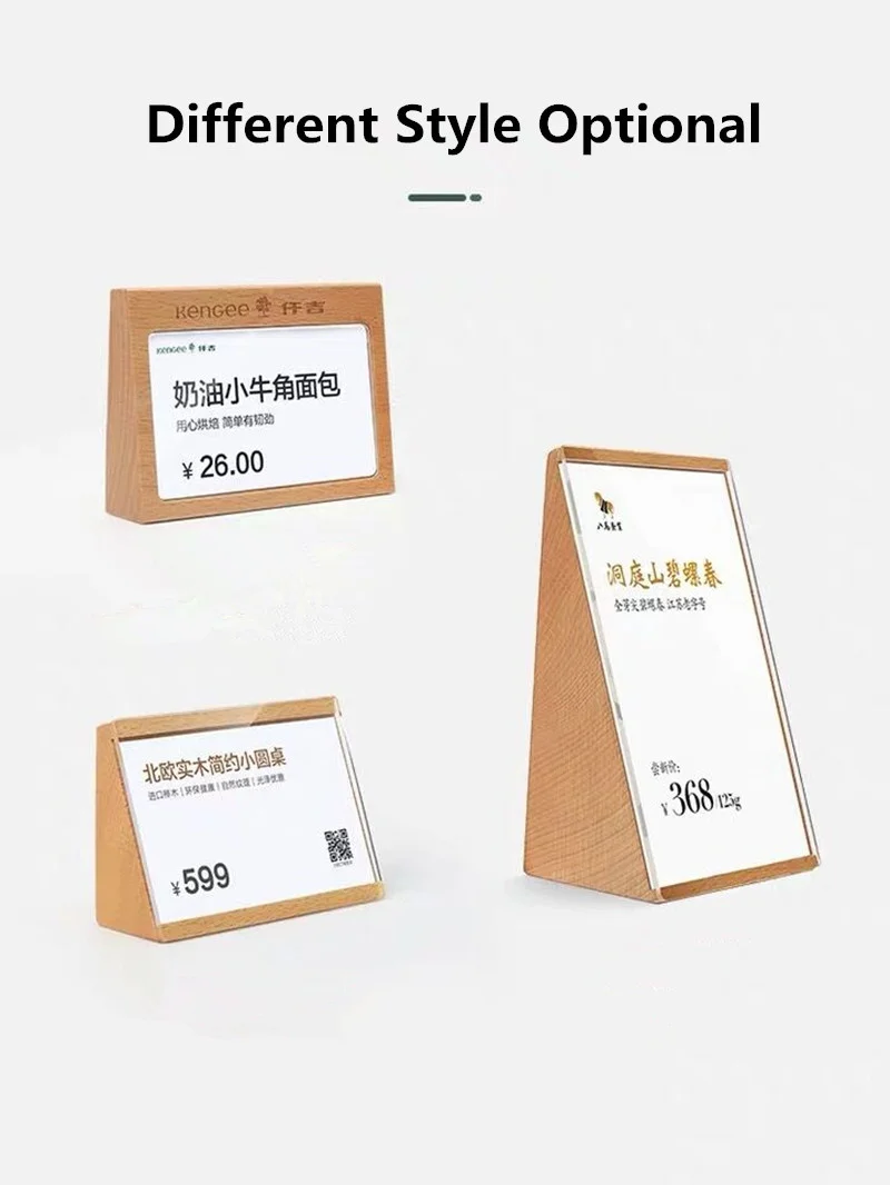 Материал: дерево + акрил Размер внутренней бумаги: 90*55 мм/100*70 мм Посылка: 1 шт. * акриловый держатель для знакаFeture: переработанный, экологически чистый Применение: ресторан, супермаркет, отель, ресторан, встреча, офис, выставка, функциональный дисплей, рекламный дисплей, дисплей обслуживания, рекламный дисплей, дисплей цены, любое место, которое вы хотите показать знак.
