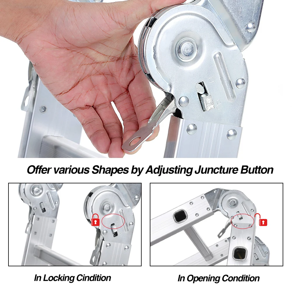 Это Многофункциональная лестница для домашнего и делового использования, которая может быть преобразована в 7 различных форм, чтобы соответствовать большому разнообразию различных работ. Легко повторно собрать с помощью замков и петель для дополнительной безопасности. Подходит для использования в любом месте, и ваша работа будет легче с этой лестницей!
